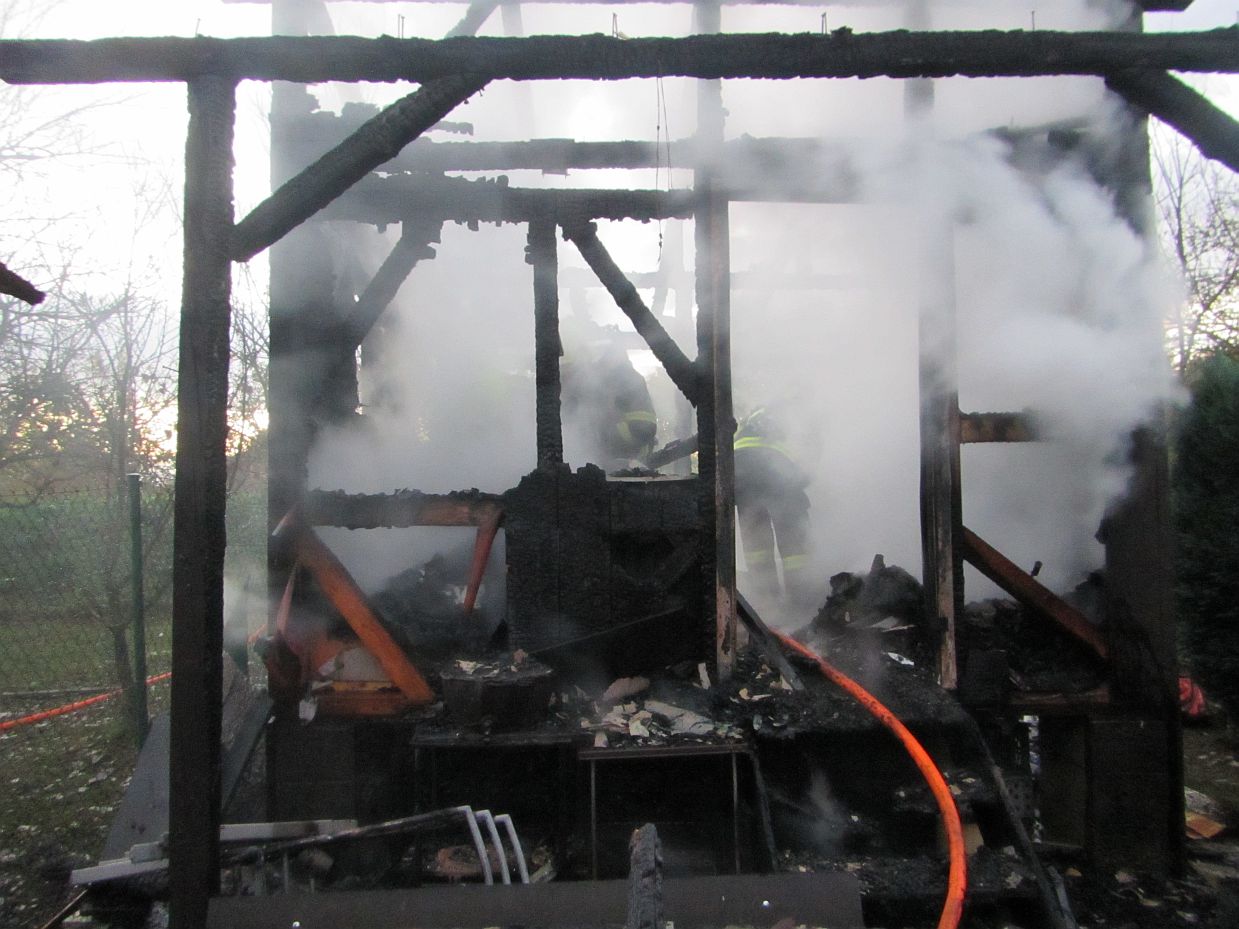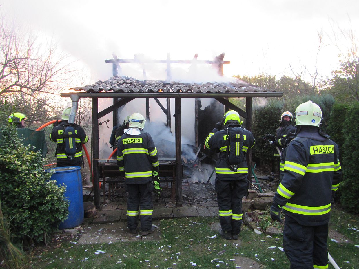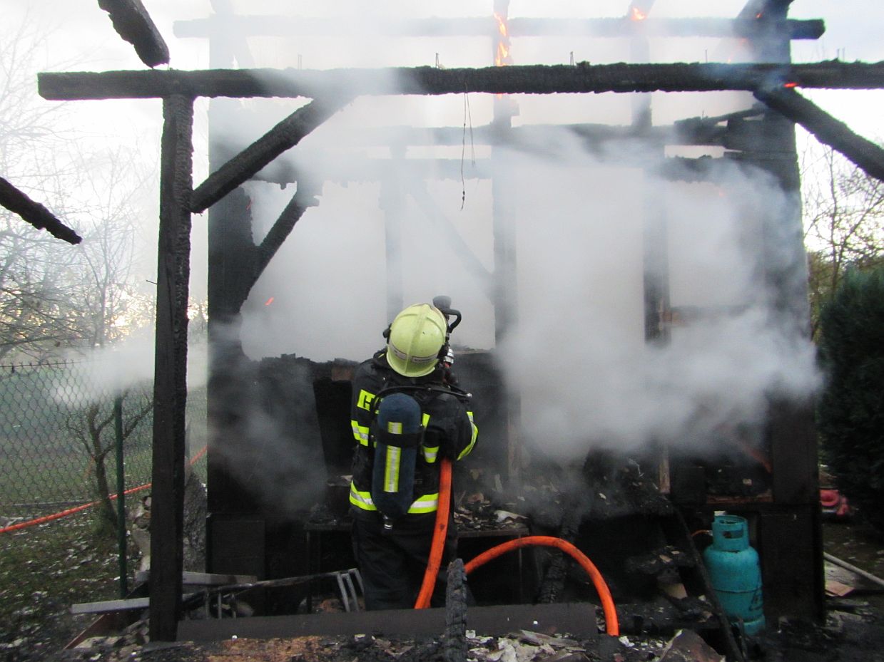 Velitel zásahu po příjezdu na místo potvrdil požár zahradní chatky v plném rozsahu. Hasiči nasadili tři hasební proudy, za pár minut měli požár pod kontrolou a velitel zásahu ohlásil lokalizaci. Poté hasiči postupně rozebrali konstrukci chaty a dohašovali skrytá ohniska. Při zásahu hasiči zjistili, že před jejich příjezdem v chatce explodovala propanbutanová láhev. Druhá se nacházela v těsné blízkosti objektu. Tu hasiči odnesli do bezpečné vzdálenosti.