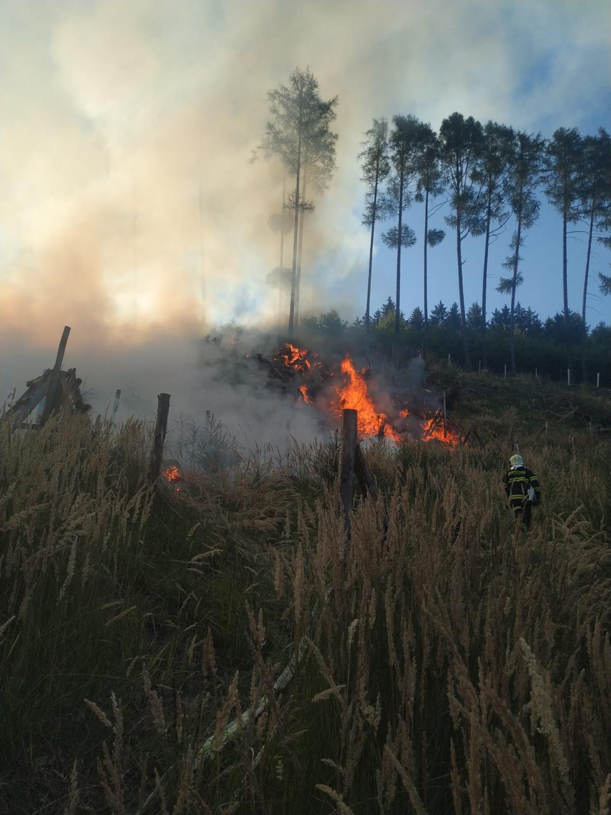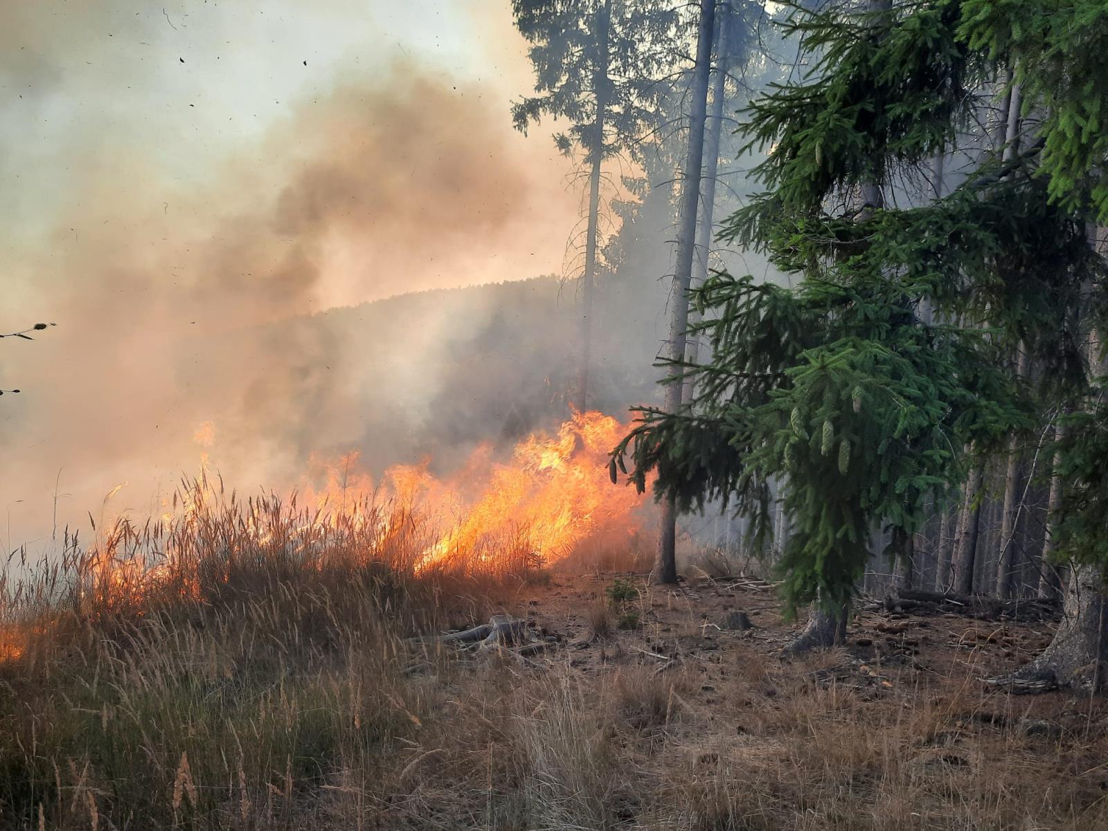 Po desáté hodině večerní upřesnil velitel zásahu plochu požářiště na 300 x 300 metrů.
