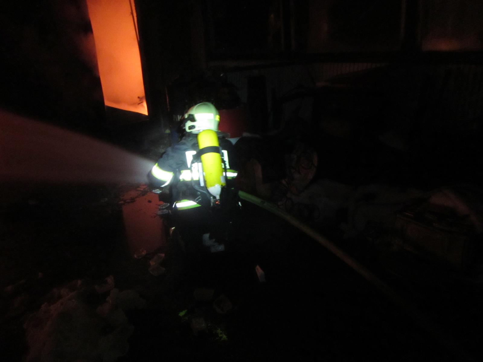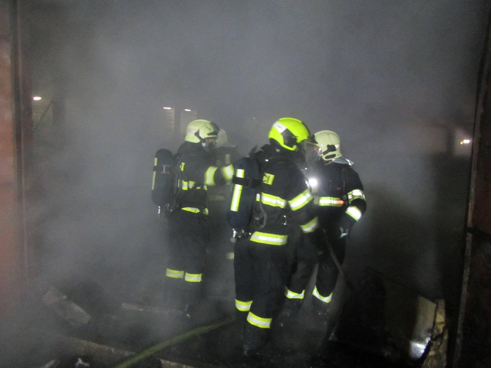 Ihned po příjezdu začali hasiči hořící plechový objekt hasit čtyřmi hasebními proudy, neboť bylo podezření, že se uvnitř nachází tlakové láhve. Do půl hodiny měli hasiči požár pod kontrolou a velitel zásahu vyhlásil lokalizaci.