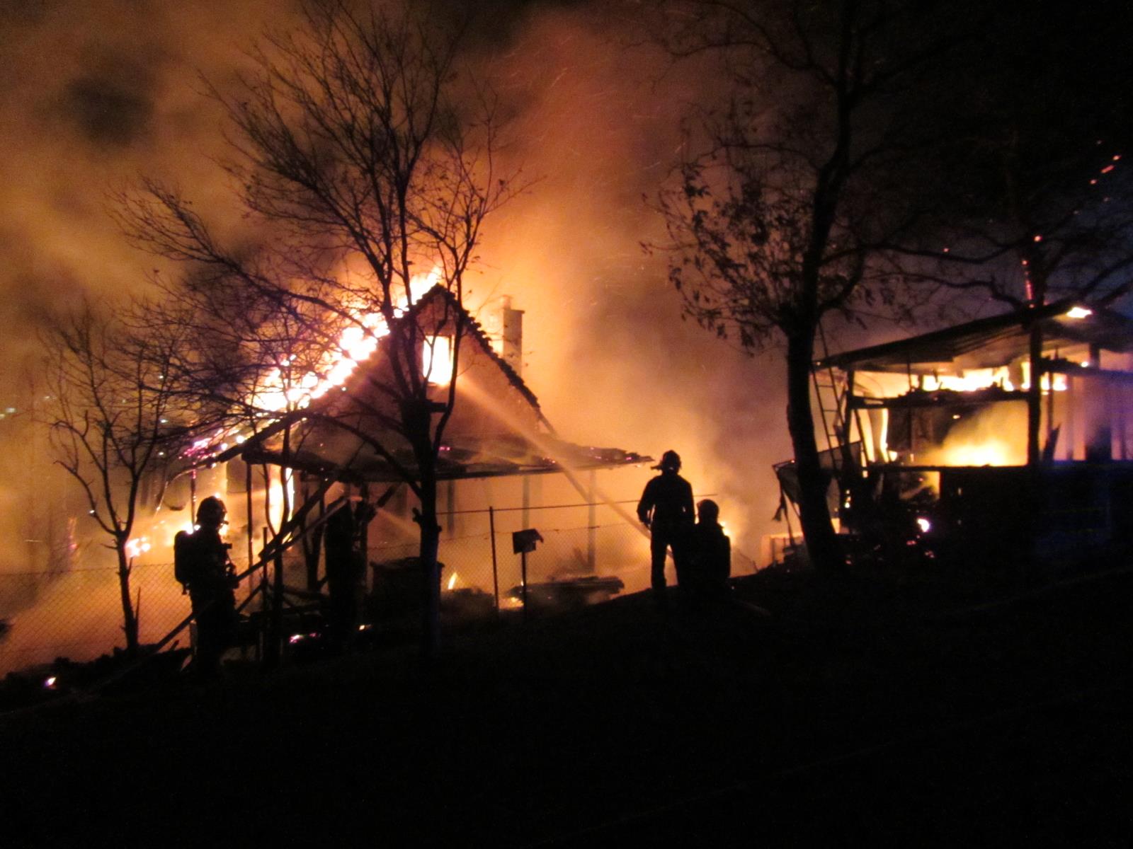 města Zlína, která potvrdila požár chaty a přilehlého zahradního domku, a to již ve třetí fázi. Postupně k místu požáru přijeli dobrovolní hasiči z Malenovic, profesionální hasiči z Otrokovic a ze Zlína.