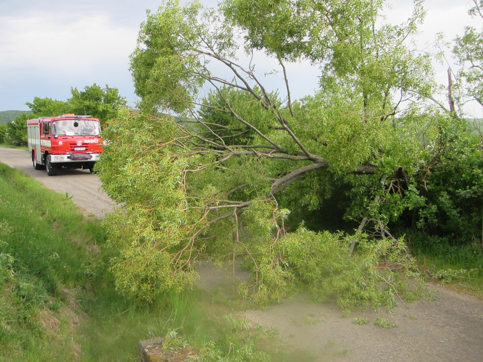 Poslední výjezd k spadlému stromu přes silnici v místní části Vinohrady před odbočkou na Maršov měli v 18:32 hodin dobrovolní hasiči města Uherský Brod.