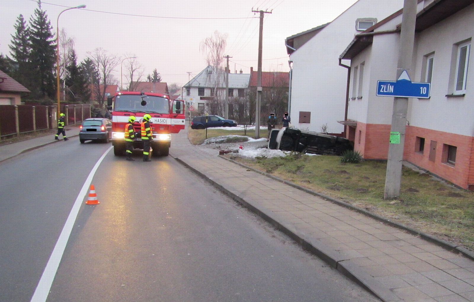 Na místo události byli vysláni profesionální hasiči ze stanice Otrokovice. Ti zabezpečili místo události a havarované vozidlo proti vzniku požáru a úniku provozních kapalin. Po zadokumentování události policisty vytáhli převrácené vozidlo na komunikaci pomocí navijáku svého zásahového vozidla a převrátili ho zpět na kola.