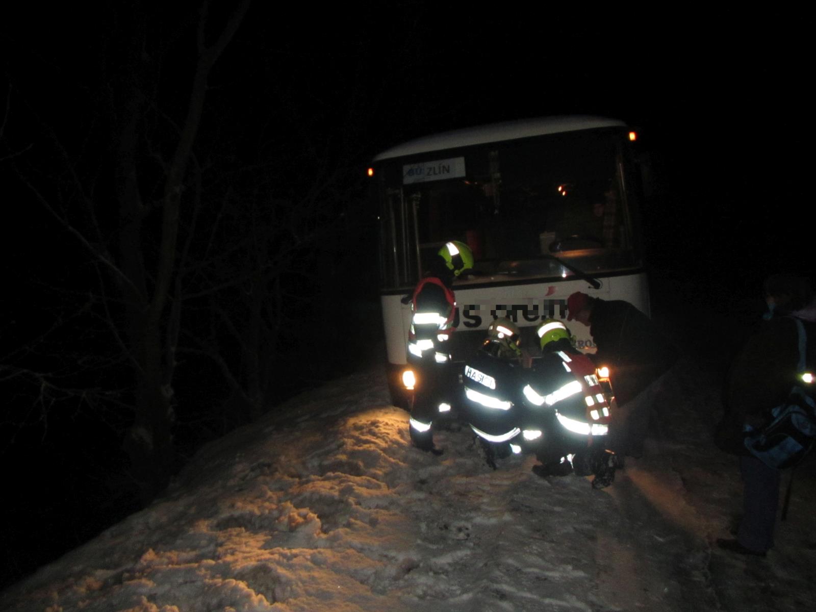 Hasiči vyprošťovali zapadlý autobus na Zlínsku