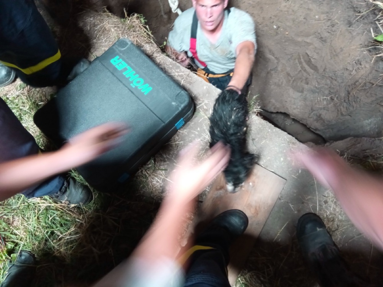 Profesionální hasiči z Uherského Hradiště a ze Zlína a také dobrovolní hasiči ze Starého Města se postupně vystřídali při kopání šachty vedle vrtu. Velitel zásahu si nechal povolat posily, osvětlovací techniku, štěrbinovou kameru a pažení. Uvězněný pes totiž vlezl do výdutě u dna vrtu a nedal se nalákat na žádný pamlsek.