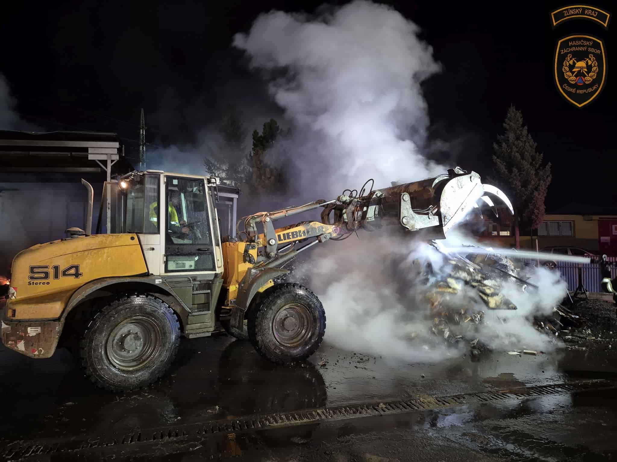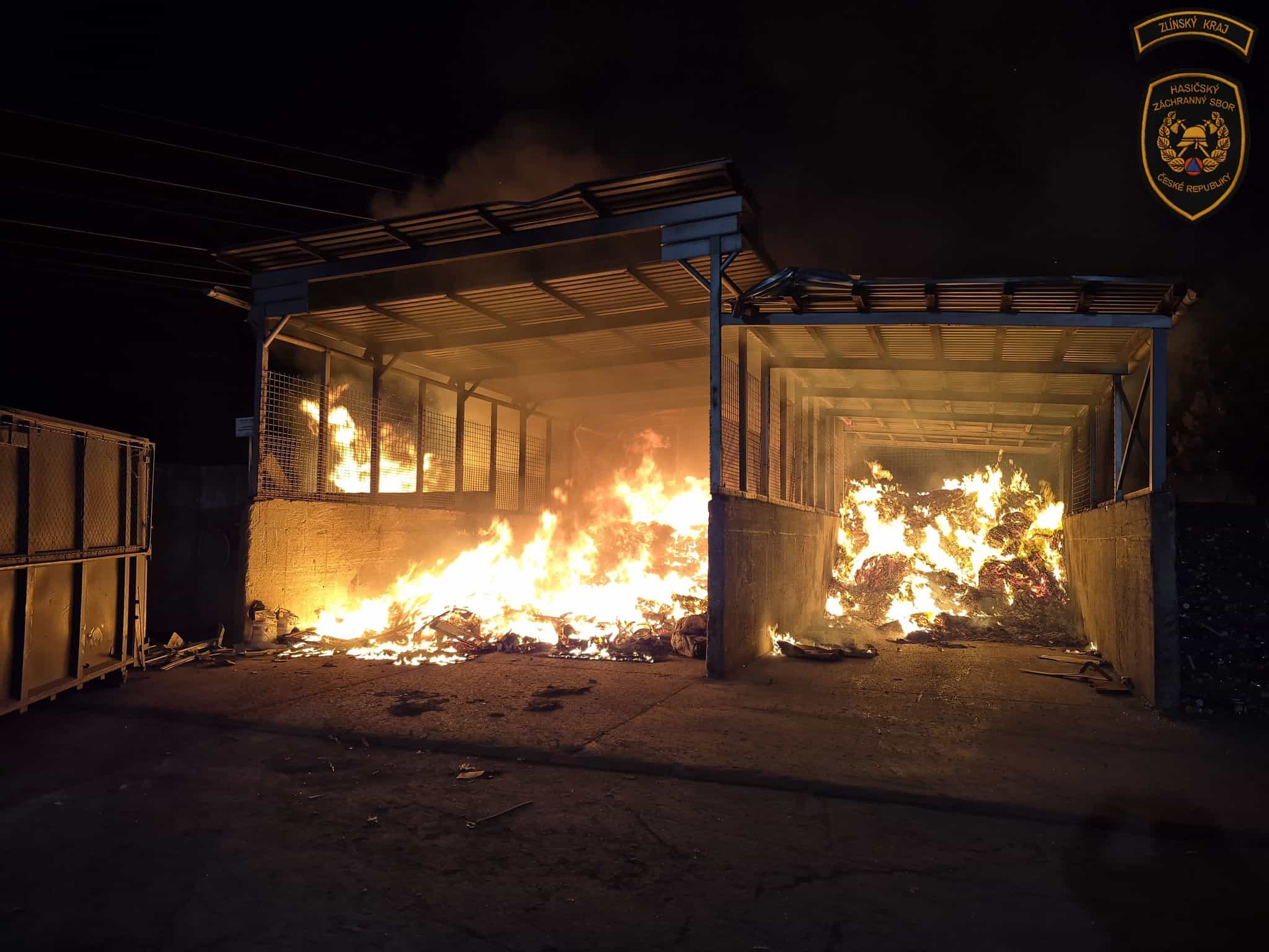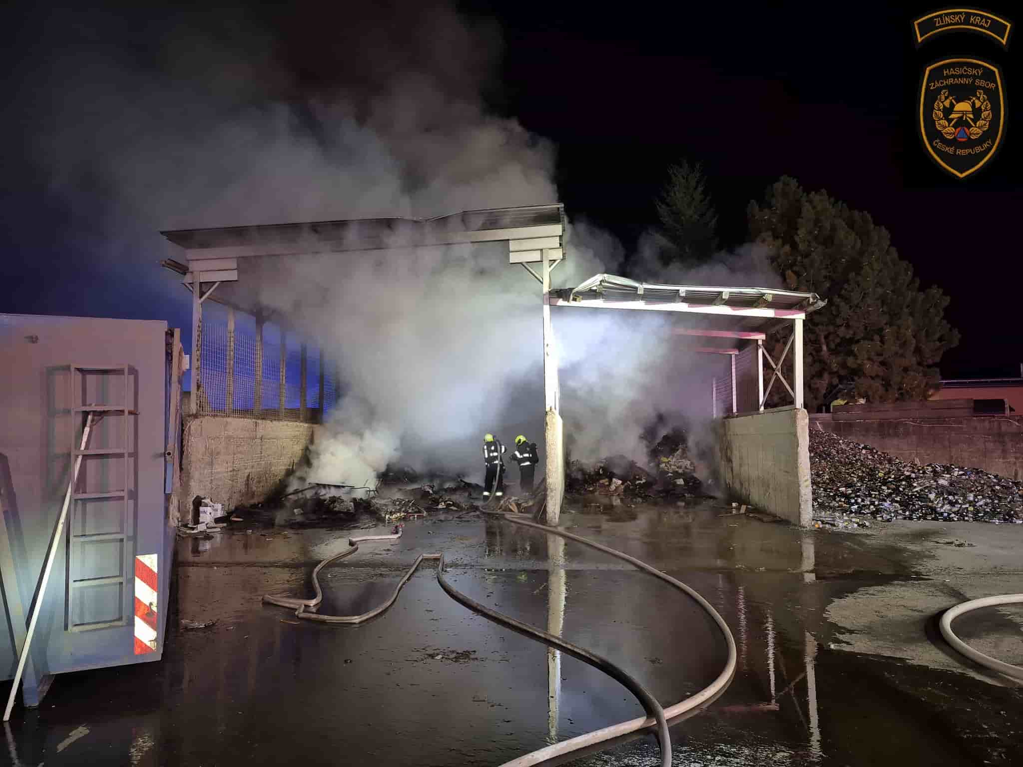 K prvnímu požáru vyjeli hasiči krátce před půlnocí do areálu v Krásně nad Bečvou, kde došlo k vznícení odpadu. Na místo byli povoláni také dobrovolní hasiči z okolních obcí. Po příjezdu jednotky okamžitě zahájily hasební práce. Hořící materiál byl nakladačem vyvážen na betonovou plochu, kde byl následně dohašován a proléván vodou. Předběžná škoda byla odhadnuta na 100 tisíc korun. Příčina vzniku požáru je stále předmětem šetření.