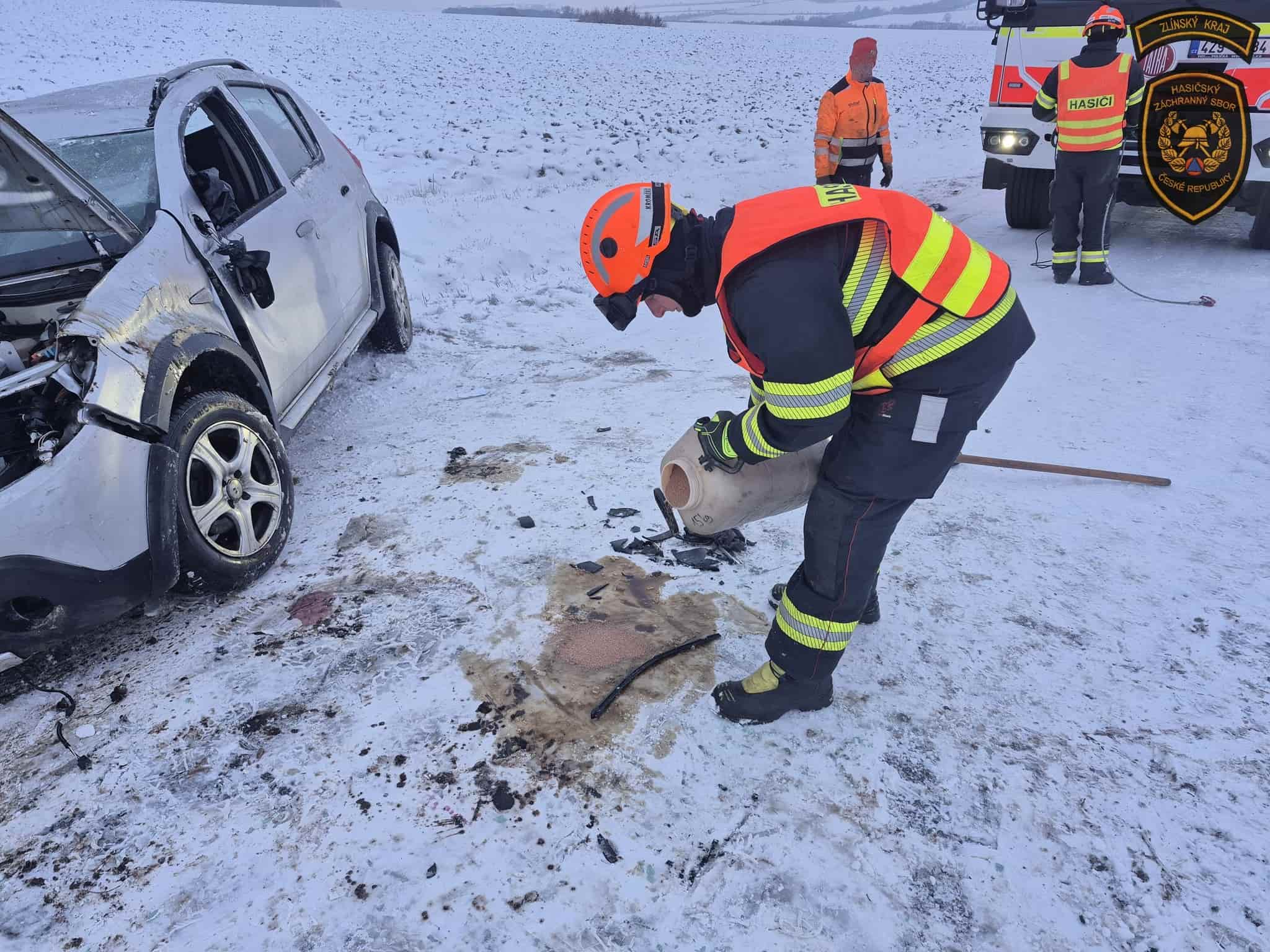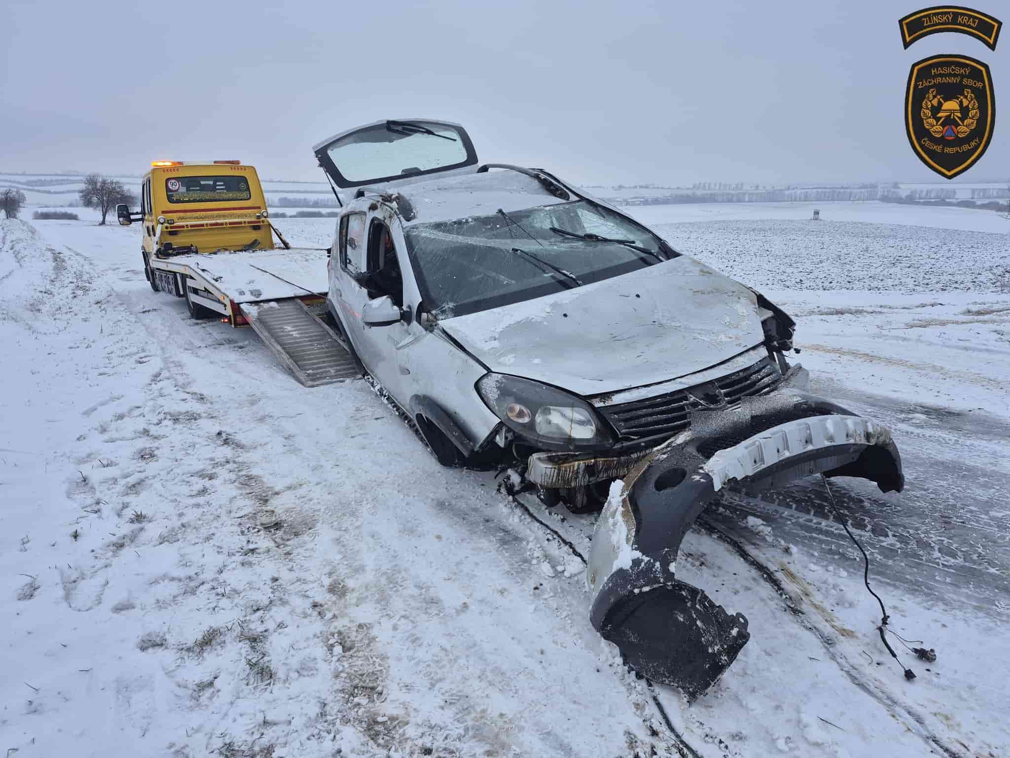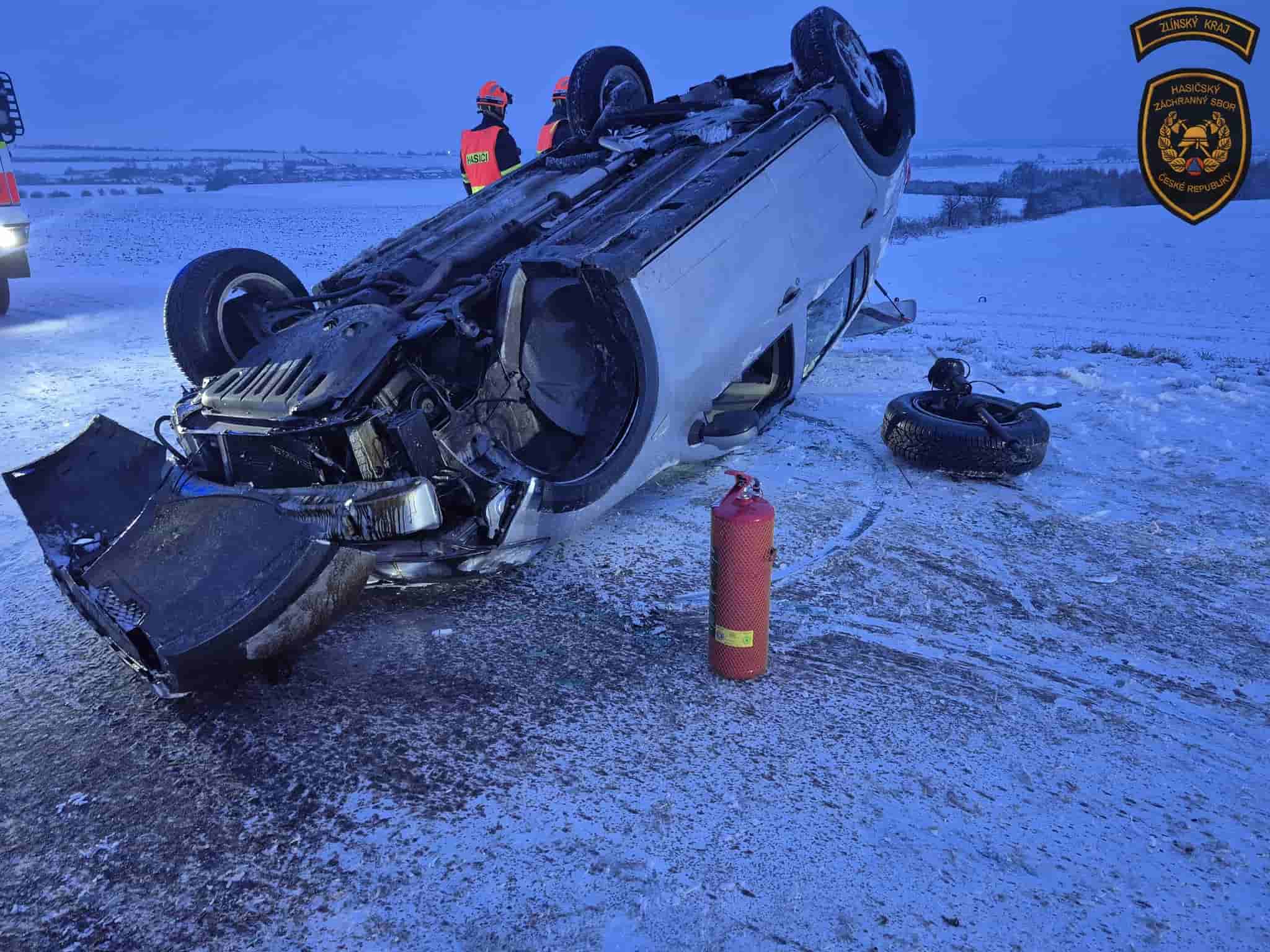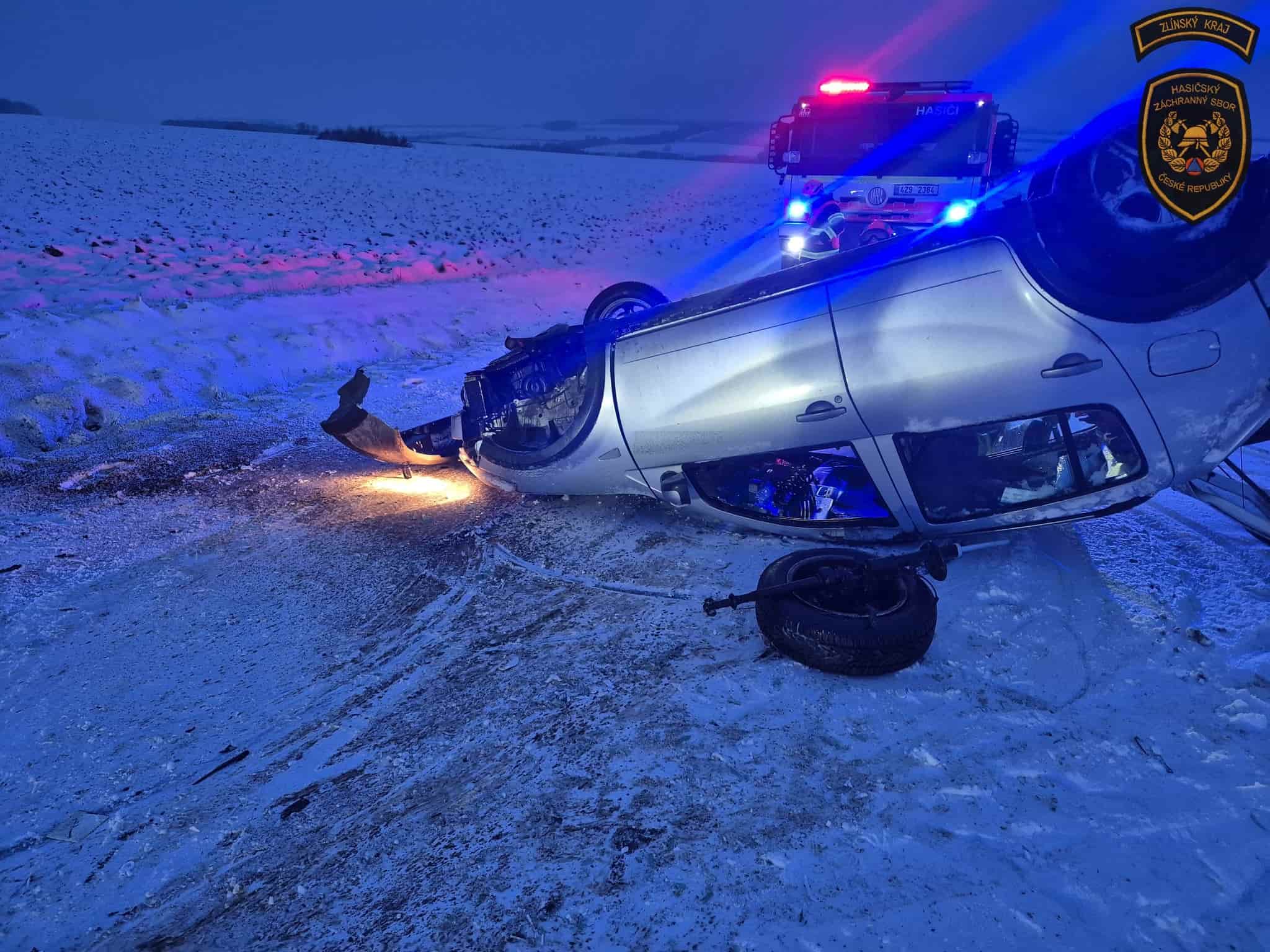 Ranní zimní podmínky dnes opět ukázaly svou nebezpečnost na silnicích. Mezi Popovicemi a Zlobicemi havarovalo osobní vozidlo, které se převrátilo na střechu a zablokovalo oba jízdní pruhy. Na místo byla vyslána jednotka profesionálních hasičů z Kroměříže.