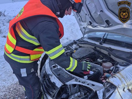 Po příjezdu na místo hasiči zjistili, že vozidlo leží na střechu ve střední části komunikace. Řidič byl vyproštěn a předán do péče zdravotnické záchranné služby. Hasiči zajistili vozidlo proti vznícení, odpojili akumulátor a provedli opatření k odstranění uniklých provozních kapalin. Sorbentem zasypali úniky, aby se zabránilo dalšímu znečištění vozovky a zvýšila bezpečnost ostatních účastníků silničního provozu.