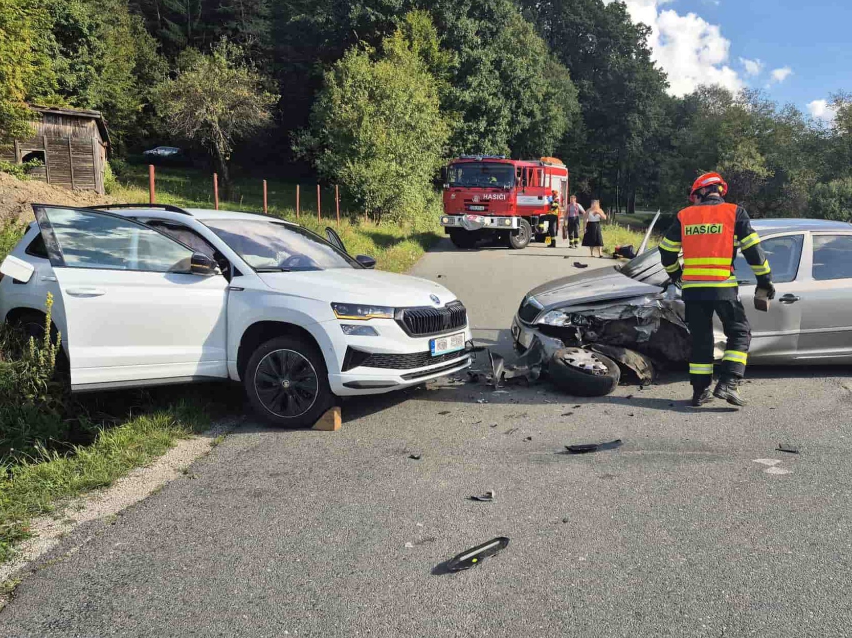 Hasiči zasahovali u nehody dvou aut, tři lidé byli zraněni