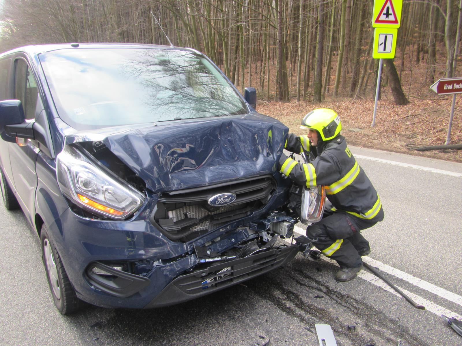 Dnes, 5.03.2019, krátce před devátou hodinou dopolední vyjeli profesionální hasiči ze stanice Uherské Hradiště s jedním cisternovým vozidlem do Buchlovských hor na Uherskohradišťsku, kde se u odbočky k hradu Buchlov střetlo několik osobních vozidel.