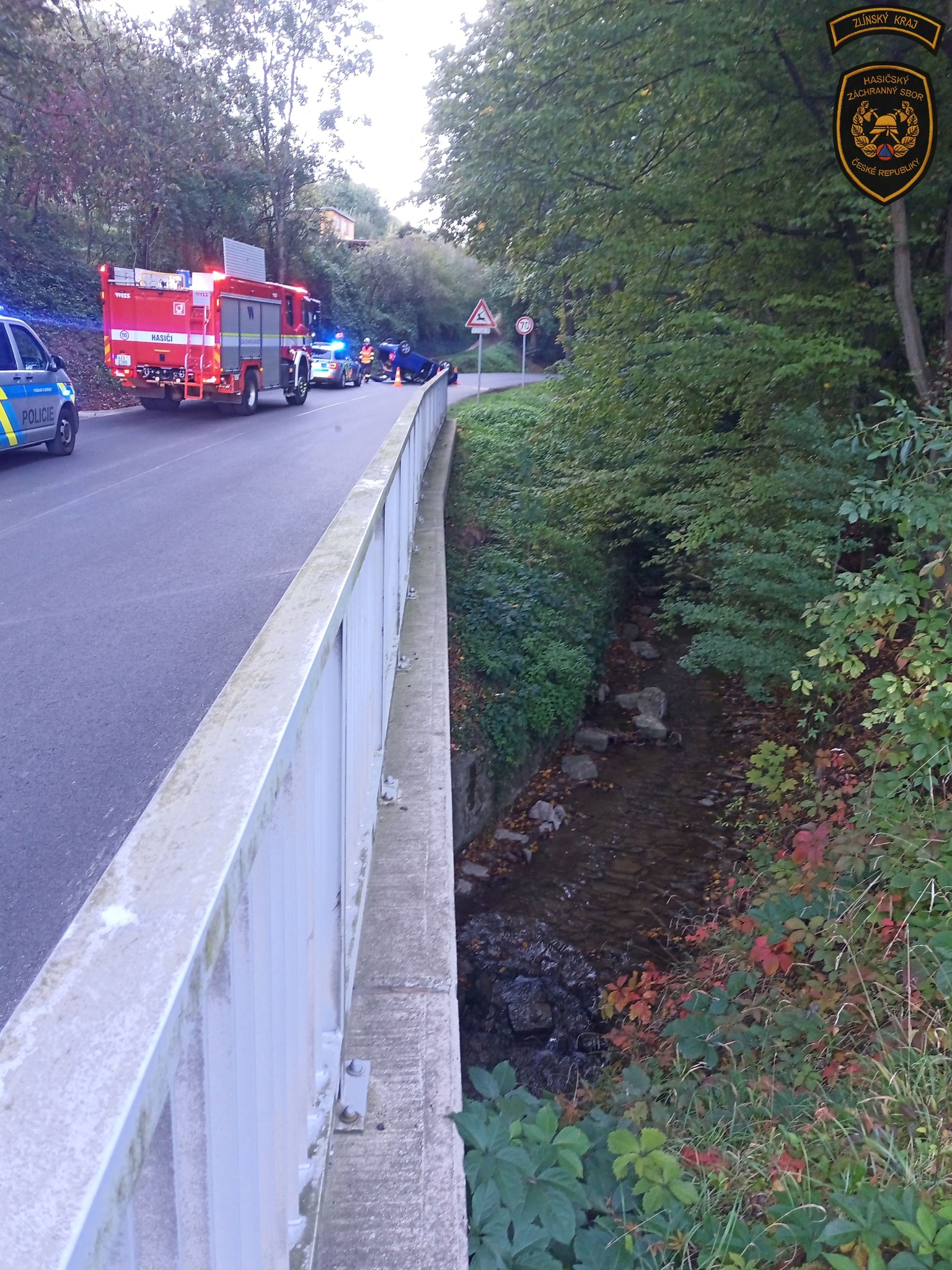 Zlínští profesionální hasiči vyjeli dnes k havárii osobního vozidla, se kterým řidička skončila na střeše.