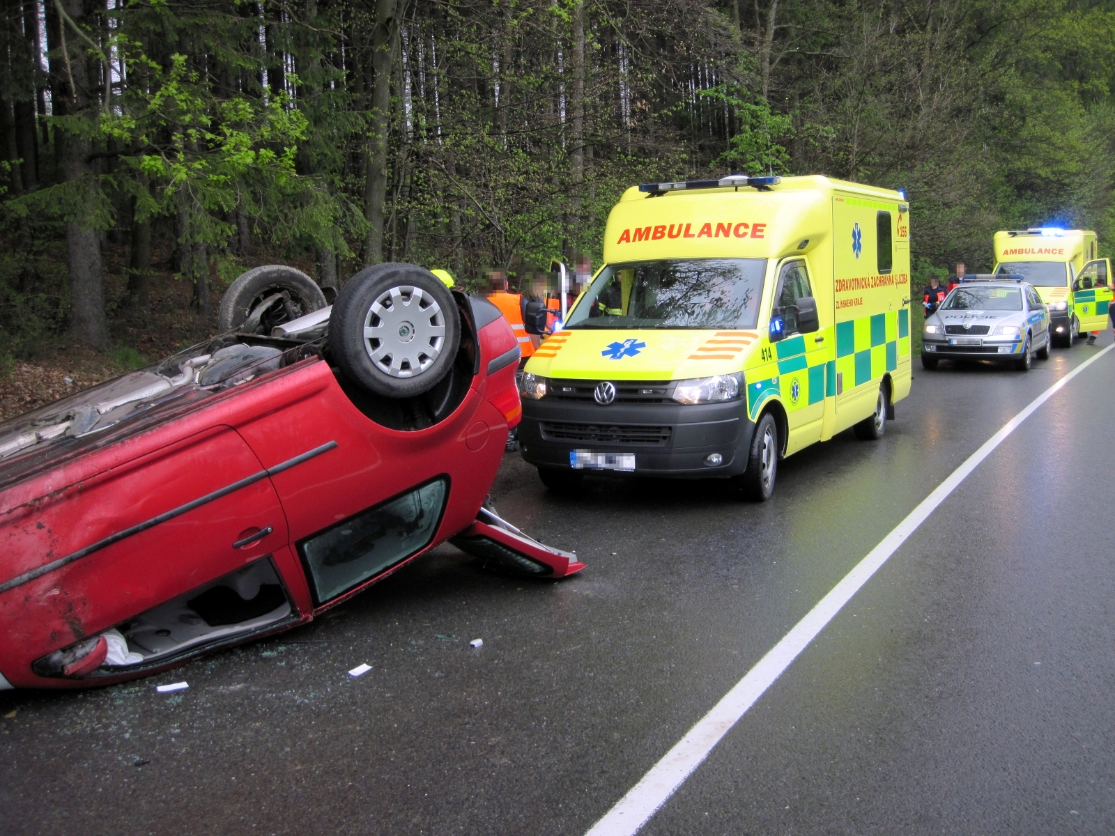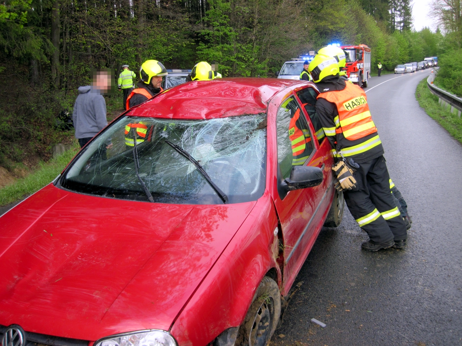 V době příjezdu hasičů již byly všechny osoby mimo vozidlo a nebylo nutné jejich vyproštění. Jeden ze čtyř cestujících byl zraněn, a po prvotním ošetření byl předán do péče přivolané posádky zdravotnické záchranné služby a odvezen do nemocnice. Další tři osoby byly prohlédnuty lékařem a ponechány na místě.