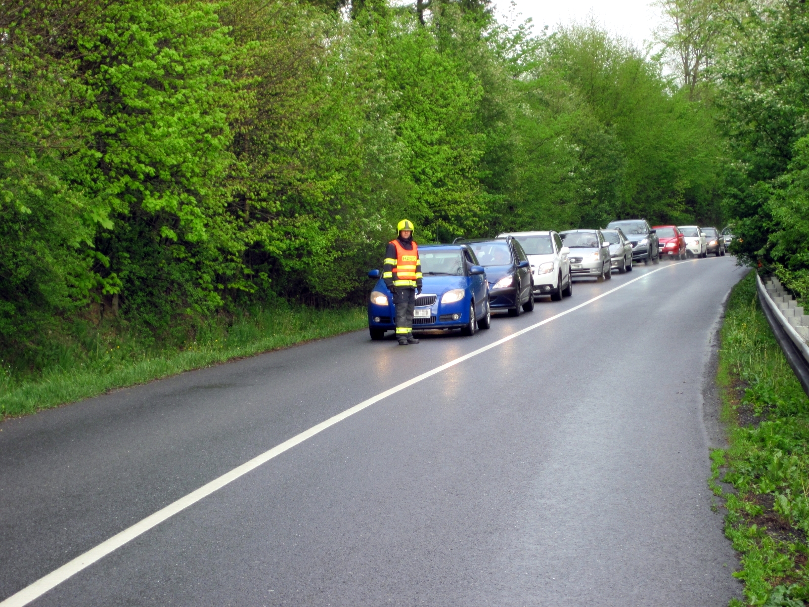 Hasiči zabezpečili místo nehody a do příjezdu policie zajišťovali kyvadlové řízení dopravy. Po zadokumentování místa byl vrak převrácen zpět na kola a naložen na odtahovou službu. Jakmile jednotka uklidila vozovku od střepů a úlomků, byl zásah na místě ukončen