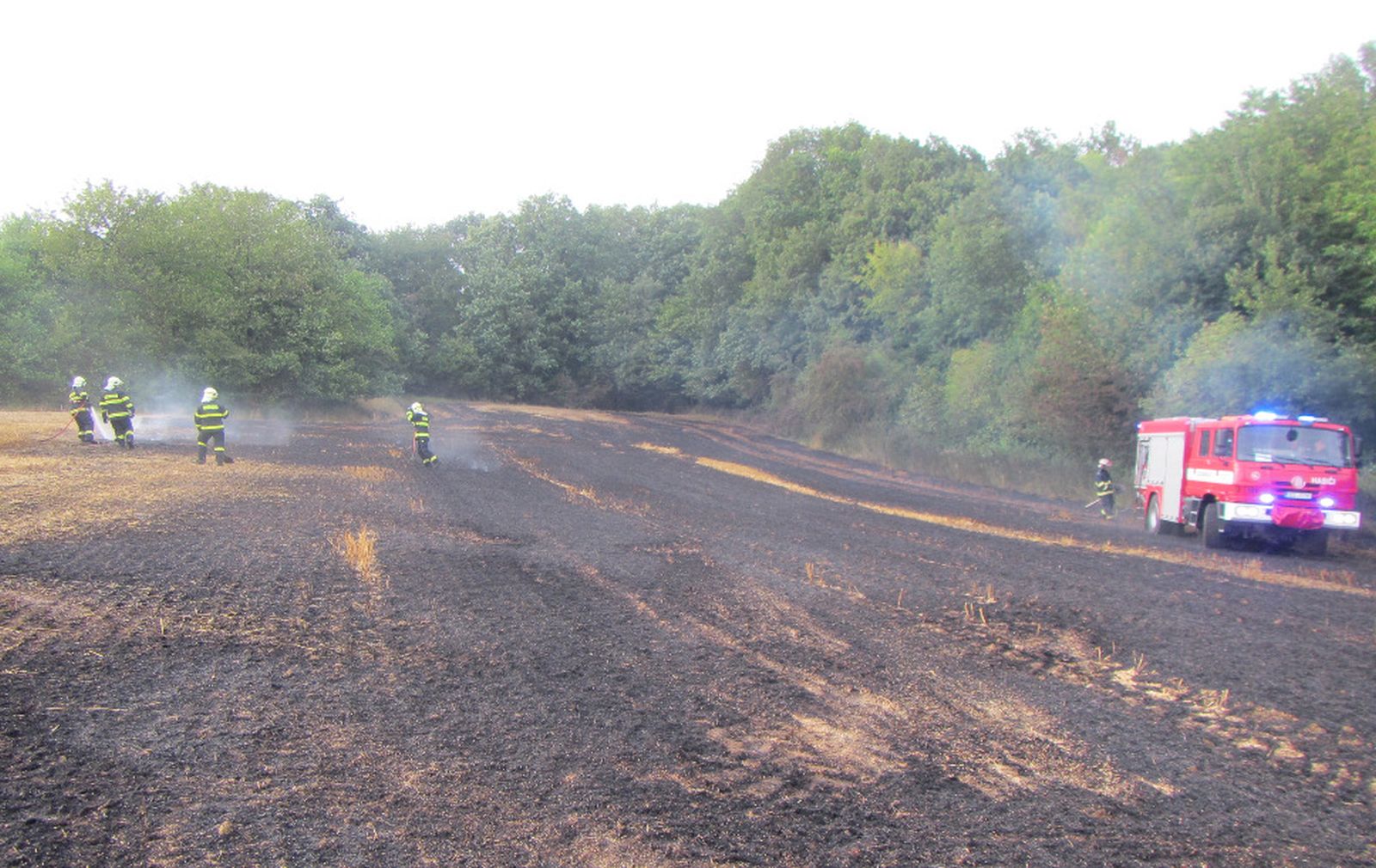30.7.2017 začalo hořet pole na Uherskohradišťsku. U obce Jalubí zasahovaly tři jednotky hasičů.