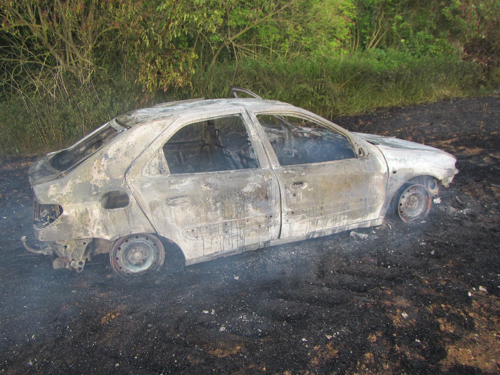Hořelo osobní vozidlo i strniště. Při požáru byla popálena jedna osoba