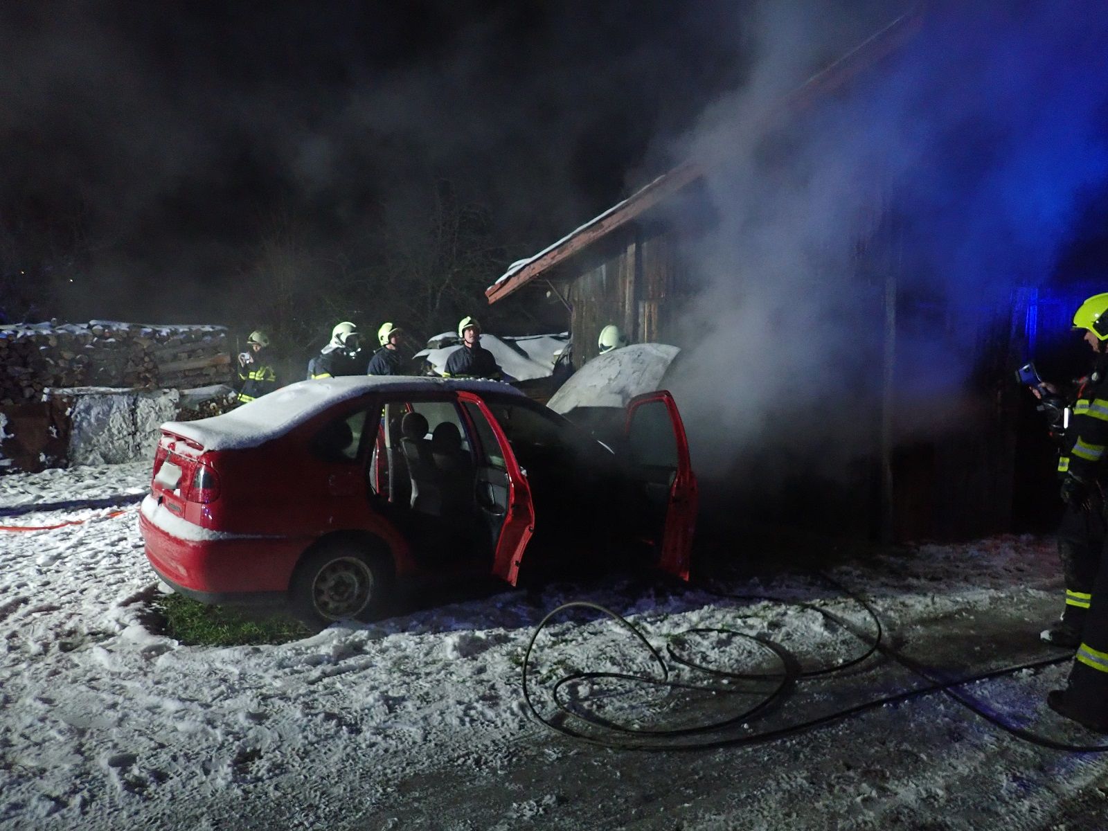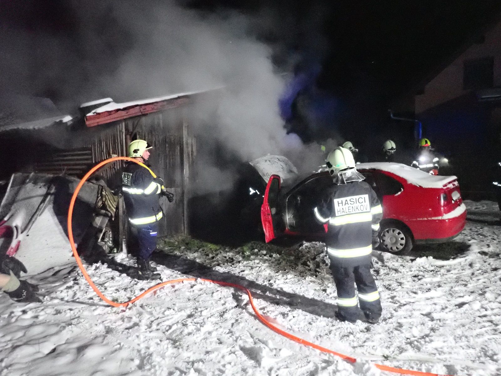 Hlášení o požáru osobního automobilu u garáže rodinného domu v místní části Bratřejůvky přijali hasiči v 4:22 hodin. Požární poplach byl vyhlášen jednotce profesionálních hasičů z požární stanice Vsetín a jednotkám dobrovolných hasičů obcí Huslenky a Halenkov.