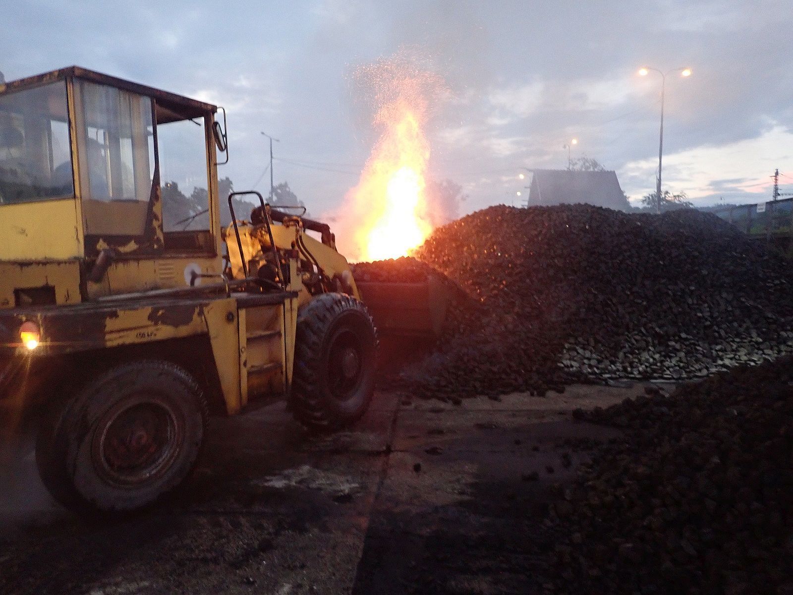 Po příjezdu hasiči v dýchacích přístrojích začali hořící brikety hasit. Na hořící hromadě bylo asi 200 tun briket. Zaměstnanci firmy s nakladači hromadu s hořícími briketami rozebírali. Odebraná část byla složena na volnou plochu, kde hasiči provedli její prolití vodou.