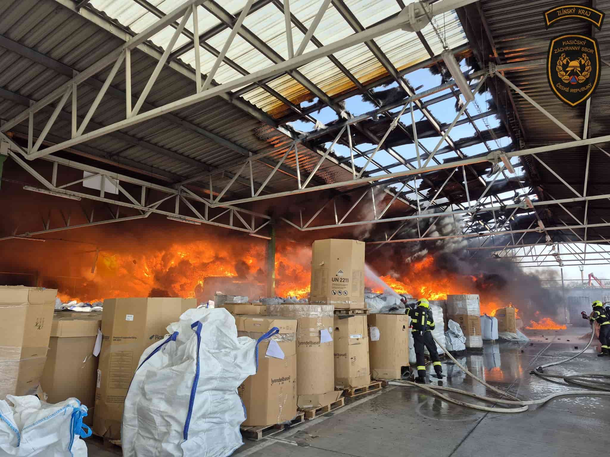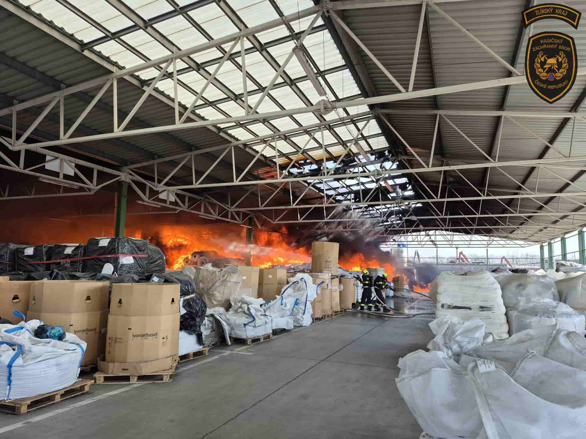 Krátce po desáté hodině dopolední přijalo operační středisko hasičů oznámení o požáru v areálu společnosti TOMA. Plameny zachvátily zastřešený venkovní sklad s balíky materiálu. Na místo vyjelo osm jednotek profesionálních a dobrovolných hasičů. Probíhají intenzivní hasební práce, přičemž velitel zásahu koordinuje další jednotky, včetně cistern, a využívá výškovou techniku a několik vodních proudů.