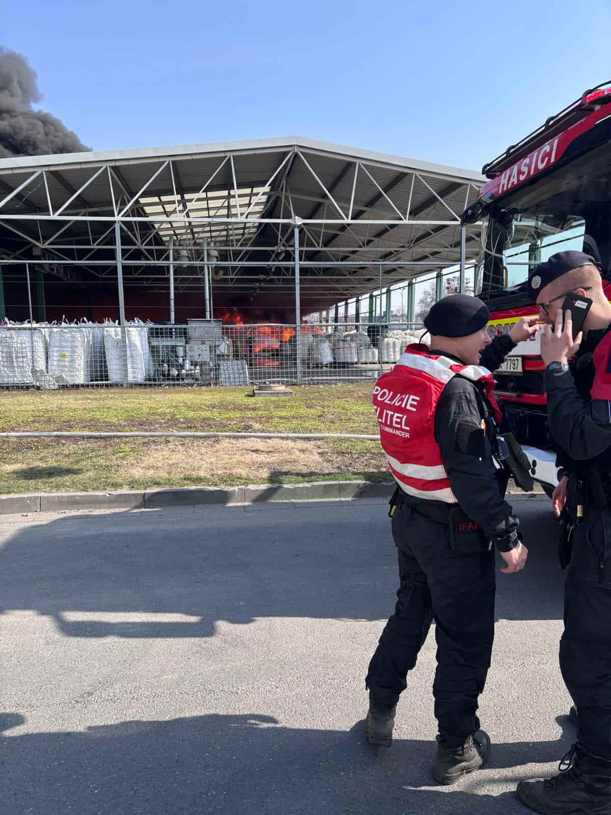 Policie současně organizuje bezpečnostní opatření a kontroluje příjezdové komunikace, aby se do oblasti zásahu nedostali nepovolaní lidé a doprava byla plynulá. Díky koordinaci všech složek IZS se snaží minimalizovat riziko pro obyvatele a zaměstnance okolních firem.