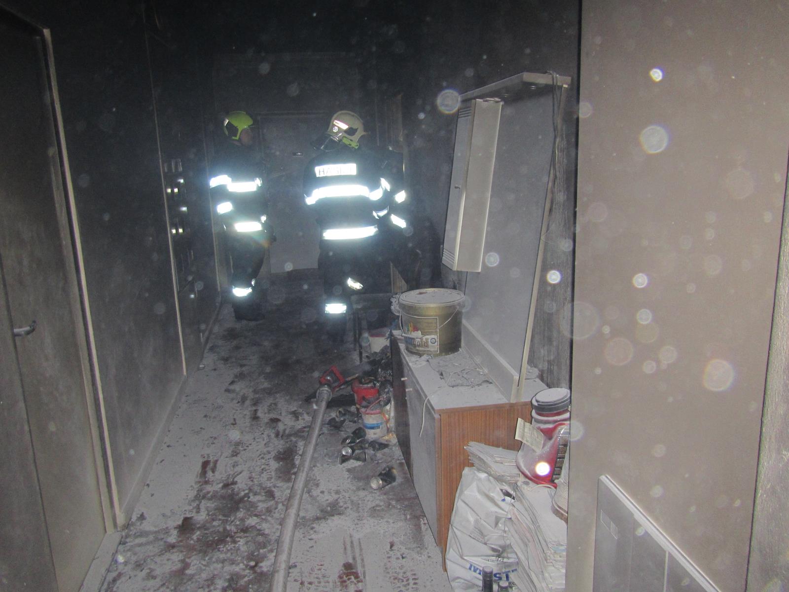 Po příjezdu na místo zde hasiči průzkumem zjistili, že ve druhém podlaží výškové budovy došlo k požáru věcí v prostoru chodby, nacházející se u vstupů do bytů. V době jejich příjezdu byla chodba silně zakouřena. Hasiči zasahovali v dýchací technice a k uhašení požáru použili práškový hasicí přístroj a jeden útočný proud. Ze čtyř bytů, nacházejících se v těsné blízkosti požáru, evakuovali celkem čtyři osoby. Naštěstí se celá událost obešla bez zranění.