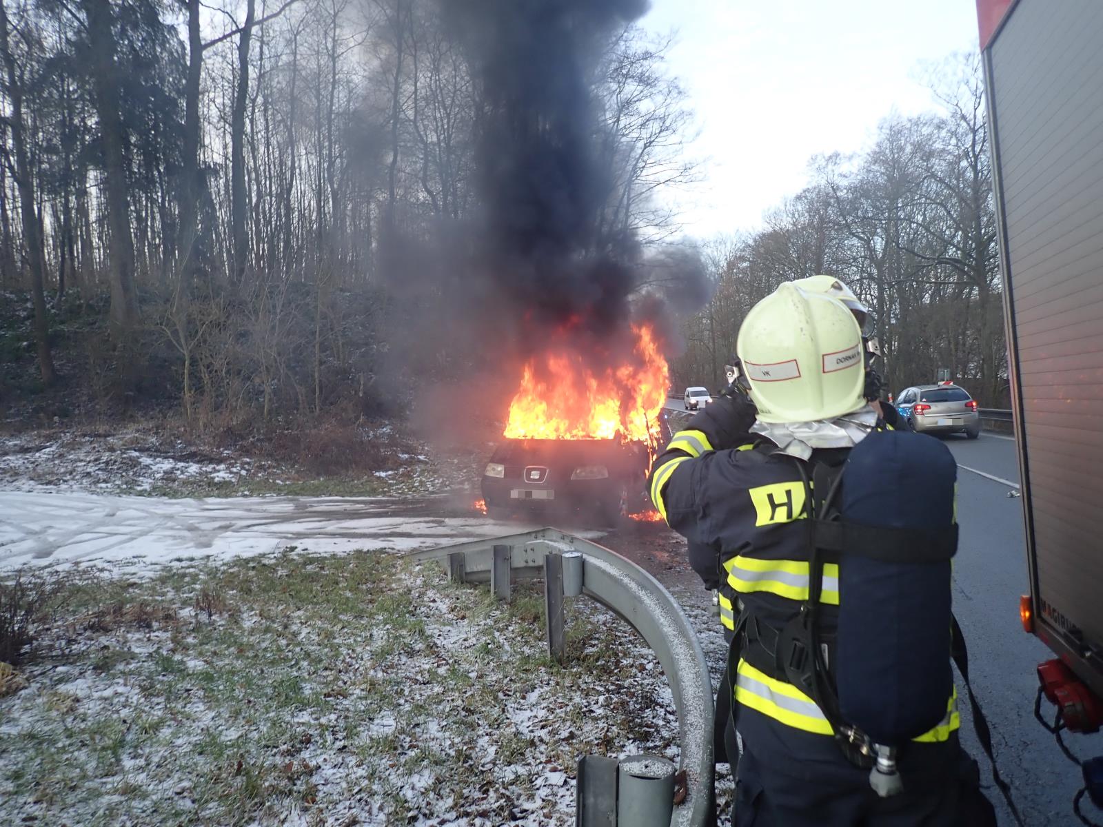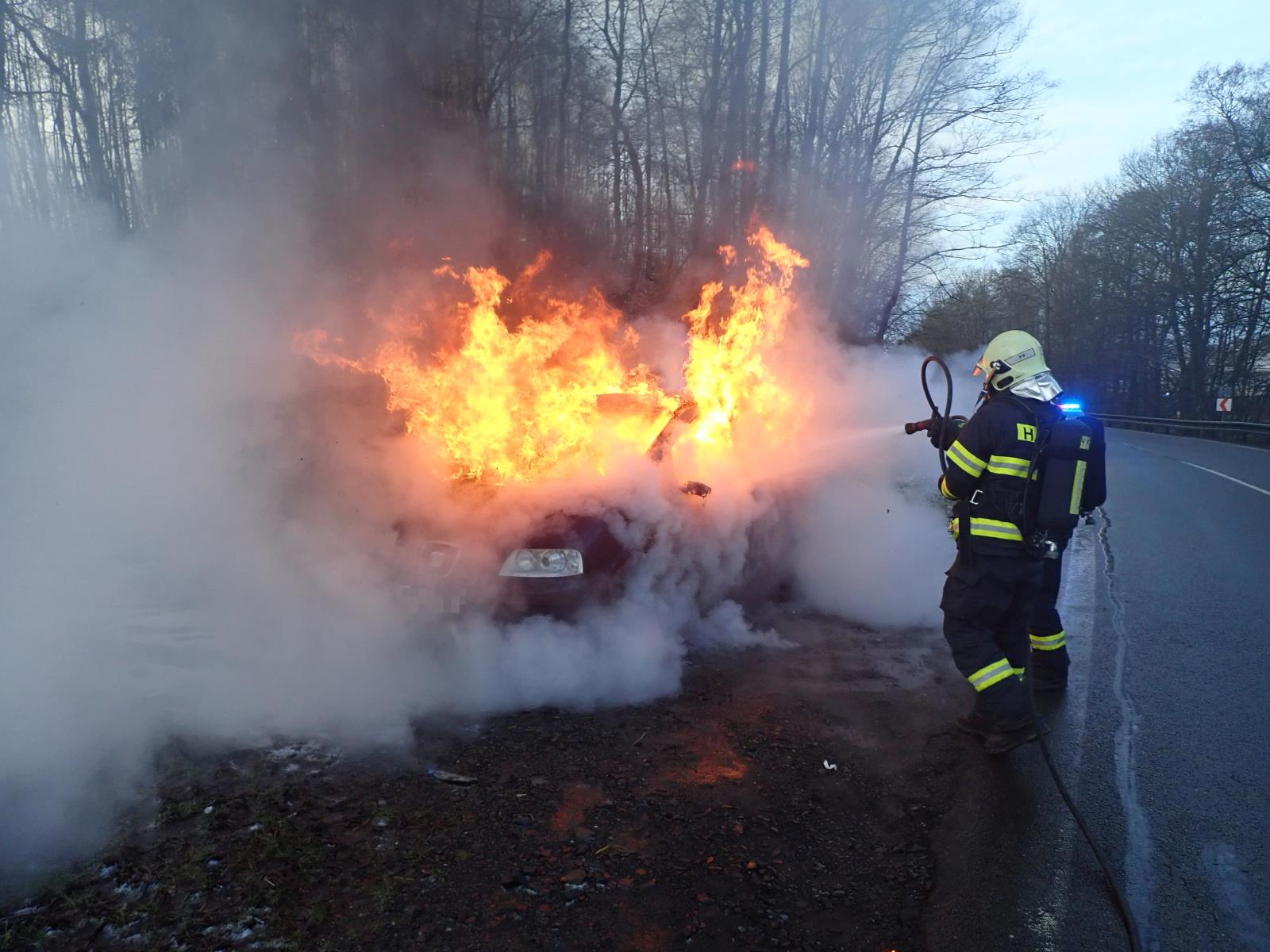 K hlášenému požáru k obci Poteč na Zlínsku byli vysláni dnes dopoledne profesionální hasiči ze stanice Valašské Klobouky a dobrovolná jednotka z Poteče. Po jejich příjezdu k místu požáru bylo auto tovární značky Seat celé v plamenech. Hasiči k likvidaci požáru použili jeden vysokotlaký proud vody a během krátké chvíle měli požár uhašený. Řidiči, který jel ve vozidle sám a stihl bezpečně z vozidla vystoupit, se nic nestalo.