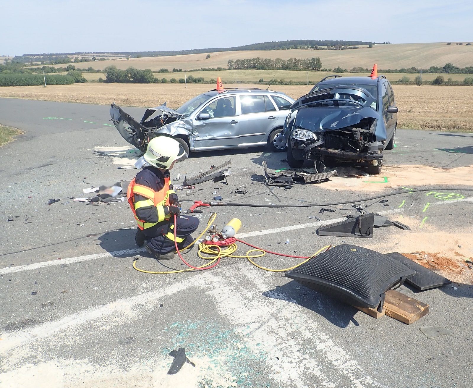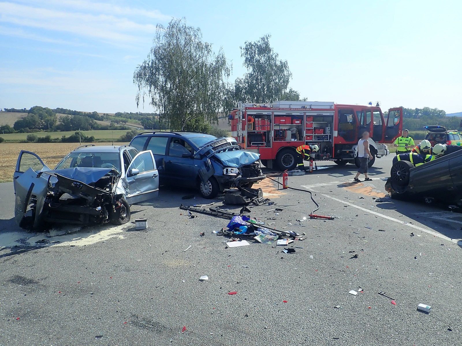 nehoda23.pngV sobotu 18. 8. 2018 zasahovali profesionální hasiči z Morkovic-Slížan a z Kroměříže od 10:07 hodin u nehody tří osobních vozidel mezi obcemi Zborovice a Zdounky.