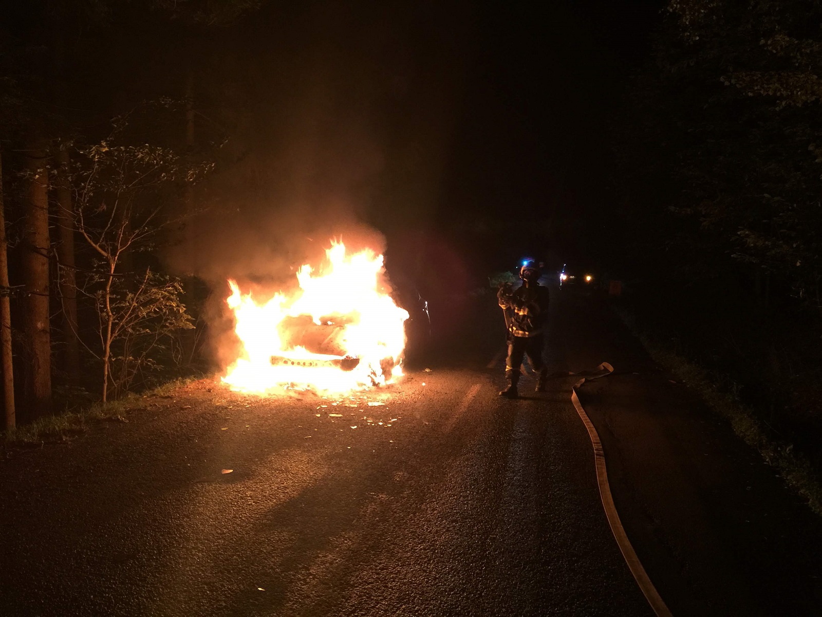 V neděli 2. 9. 2018 vyjely k požáru osobního automobilu mezi Horní Jasenkou a Dušnou v okresu Vsetín dvě jednotky hasičů.