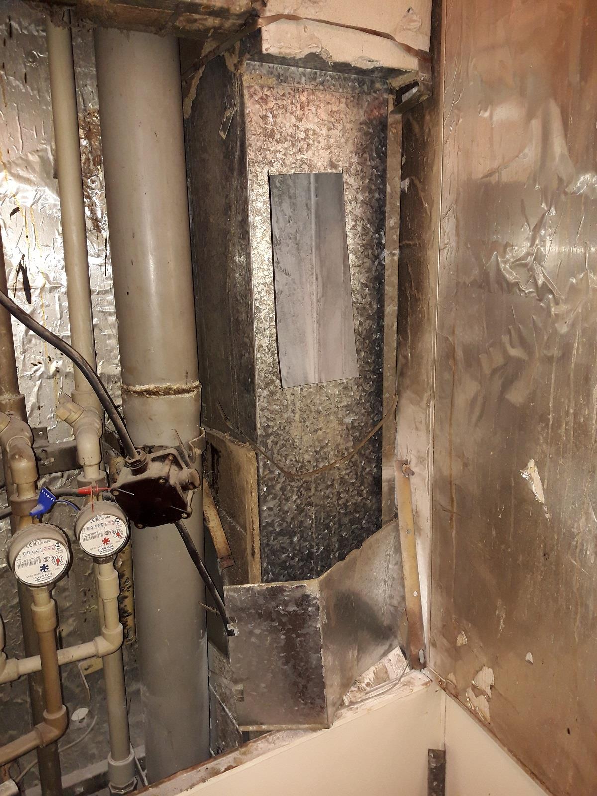 Hasiči v dýchacích přístrojích provedli průzkum a vznikající požár v izolaci vzduchotechnického potrubí uhasili jedním práškovým hasícím přístrojem. Následně provedli demontáž obložení potrubí a kontrolu v sousedících bytech.