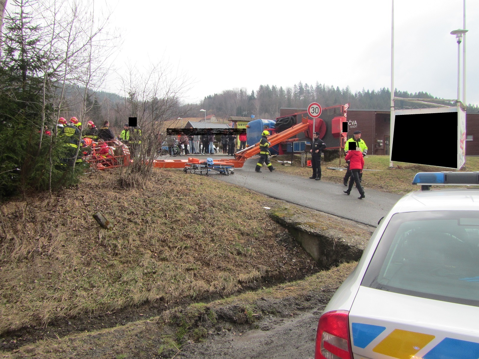 Informaci o havárii automobilové plošiny v Horní Bečvě na Vsetínsku přijali hasiči v sobotu 11.března 2017 v 9:22 hodin. Podle prvotních informací došlo také ke zranění několika osob.