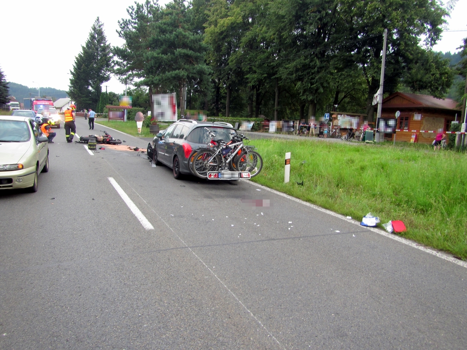 Jako první k události dorazili hasiči města Rožnov pod Radhoštěm. Jak bylo potvrzeno, došlo zde k čelnímu střetu osobního automobilu s motocyklem, na kterém cestovaly dvě osoby.