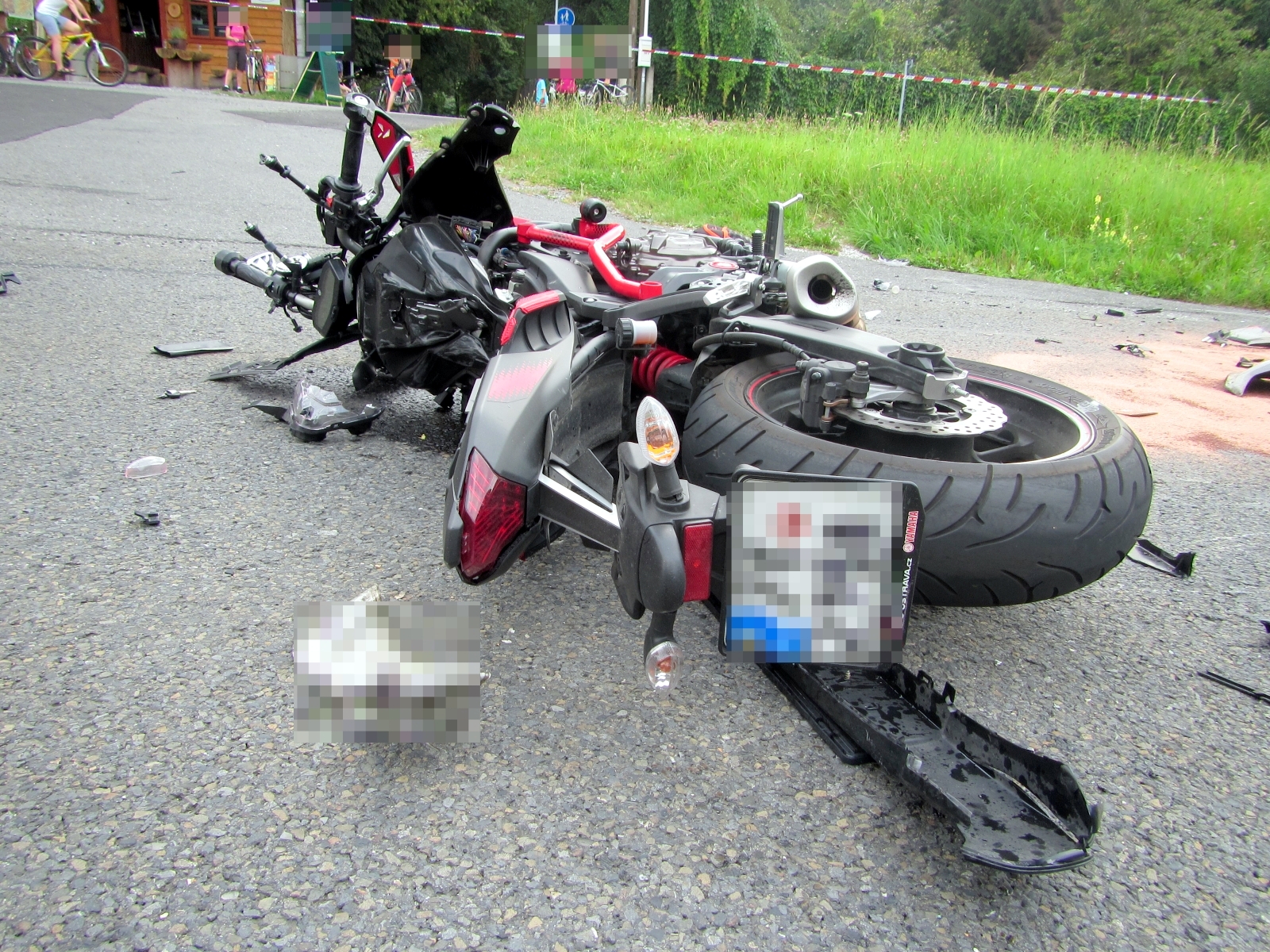 Řidič motocyklu silný náraz bohužel nepřežil, jeho spolujezdkyně byla s těžkým zraněním letecky transportována do nemocnice. V osobním voze Peugeot došlo ke zranění jedné dospělé osoby a dítěte, další dospělá osoba zraněna nebyla.