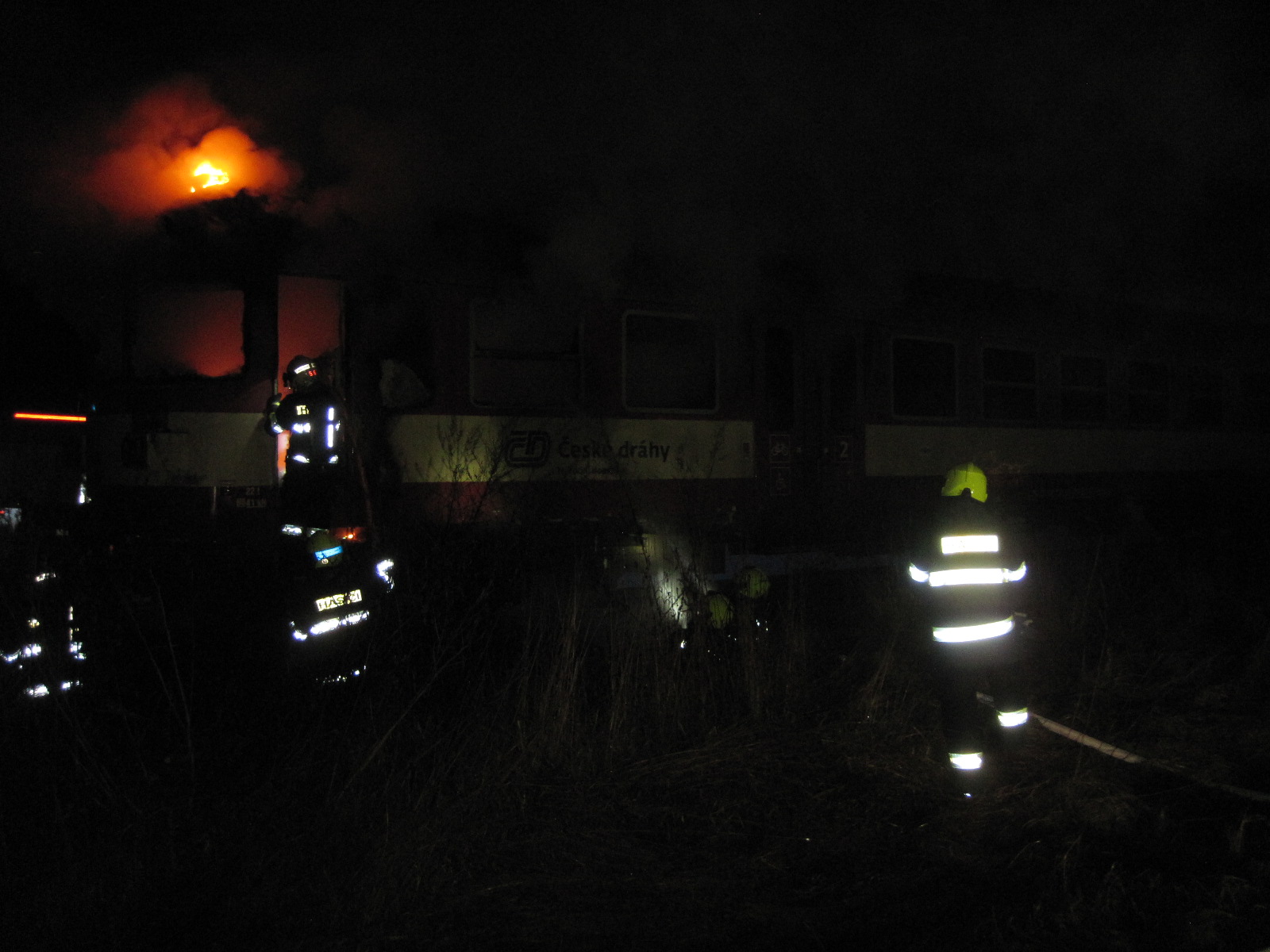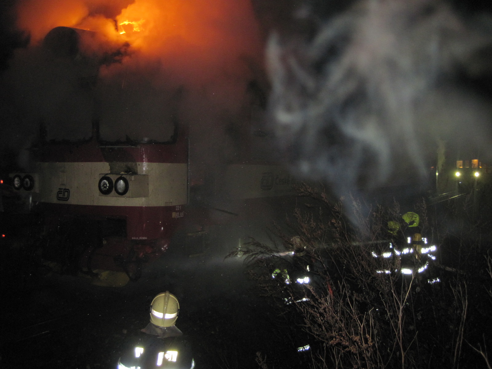 Na požářiště se dostavili i drážní hasiči z Olomouckého kraje, kteří si na místě převzali velení a zjišťují okolnosti požáru.