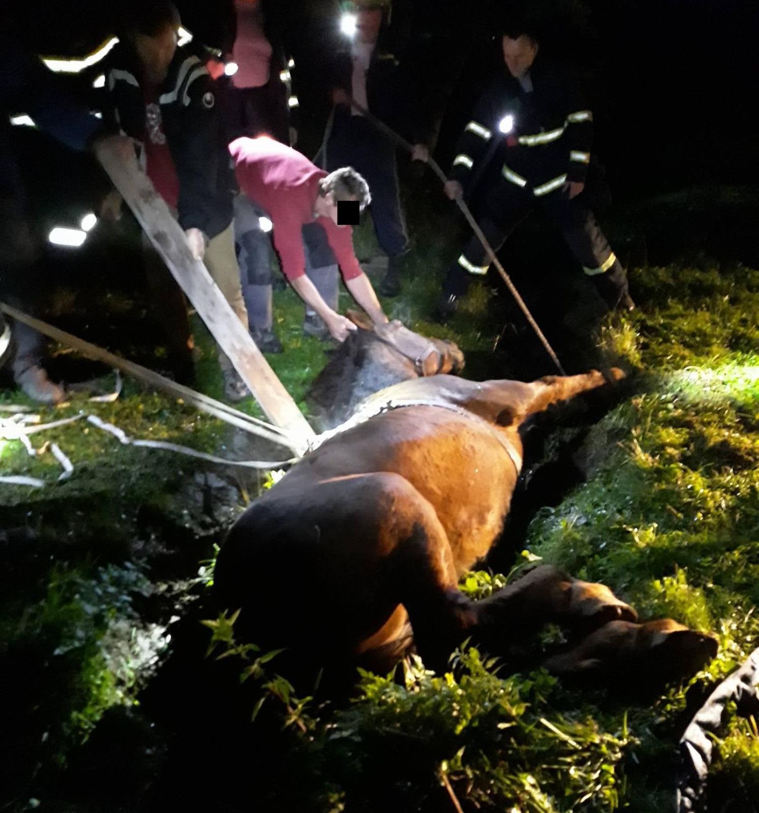 Kůň zůstal ležet v příkopu tak nešťastně, že nebyl schopen postavit se vlastními silami ani s pomocí místních obyvatel. Po příjezdu hasičů se společným úsilím podařilo koně postavit zpět na nohy a vyvést z koryta.