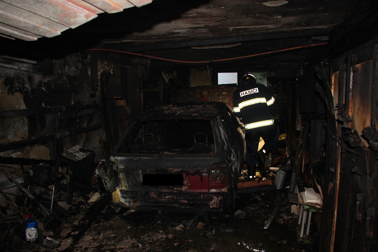 Plameny zničily plastové okno, garážová vrata, elektroinstalaci, osobní vozidlo Škoda Felicia, omítky a vnitřní vybavení garáže. Sousedící prostory byly znečištěny pevnými částicemi nedokonalého hoření.