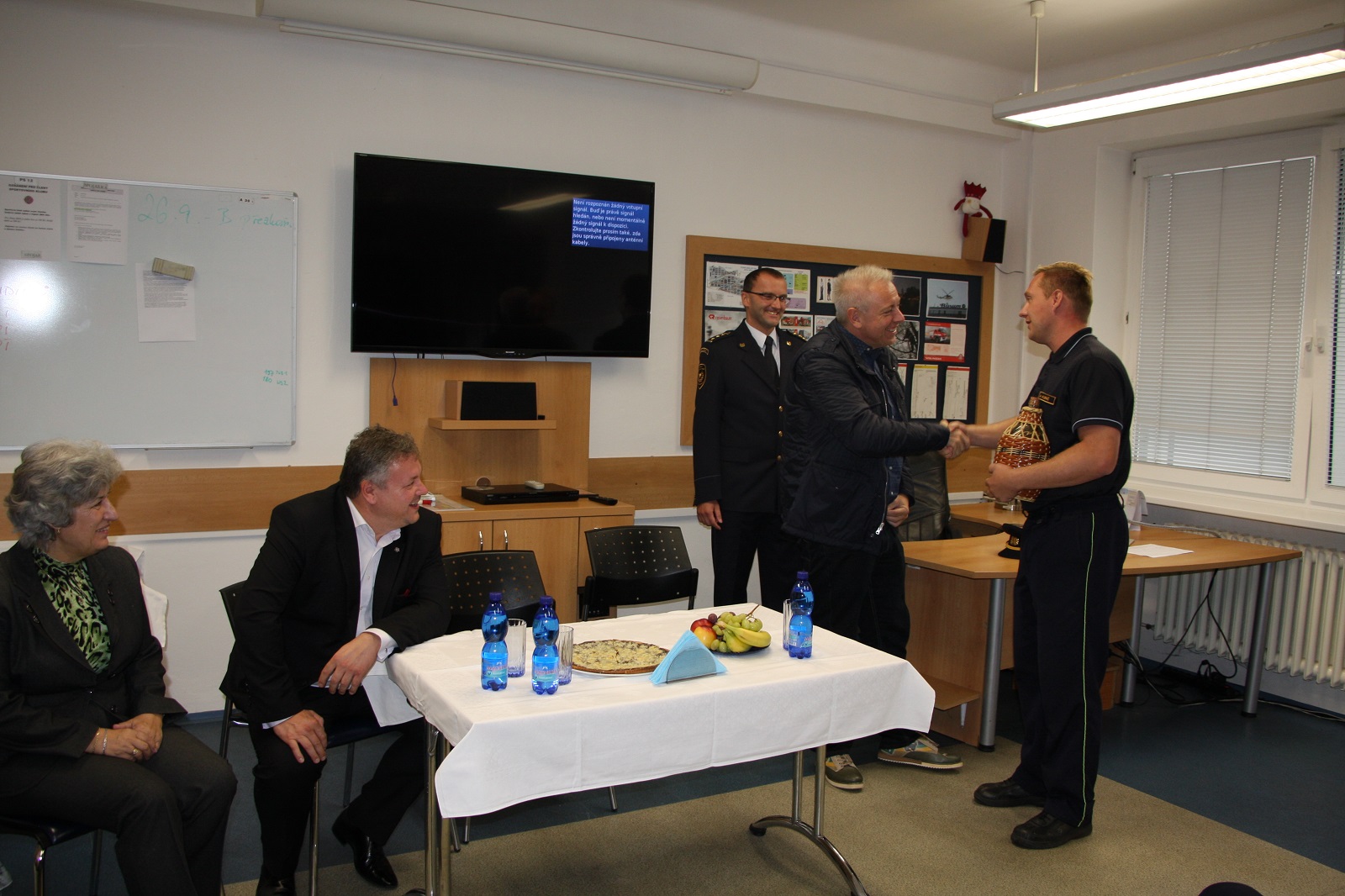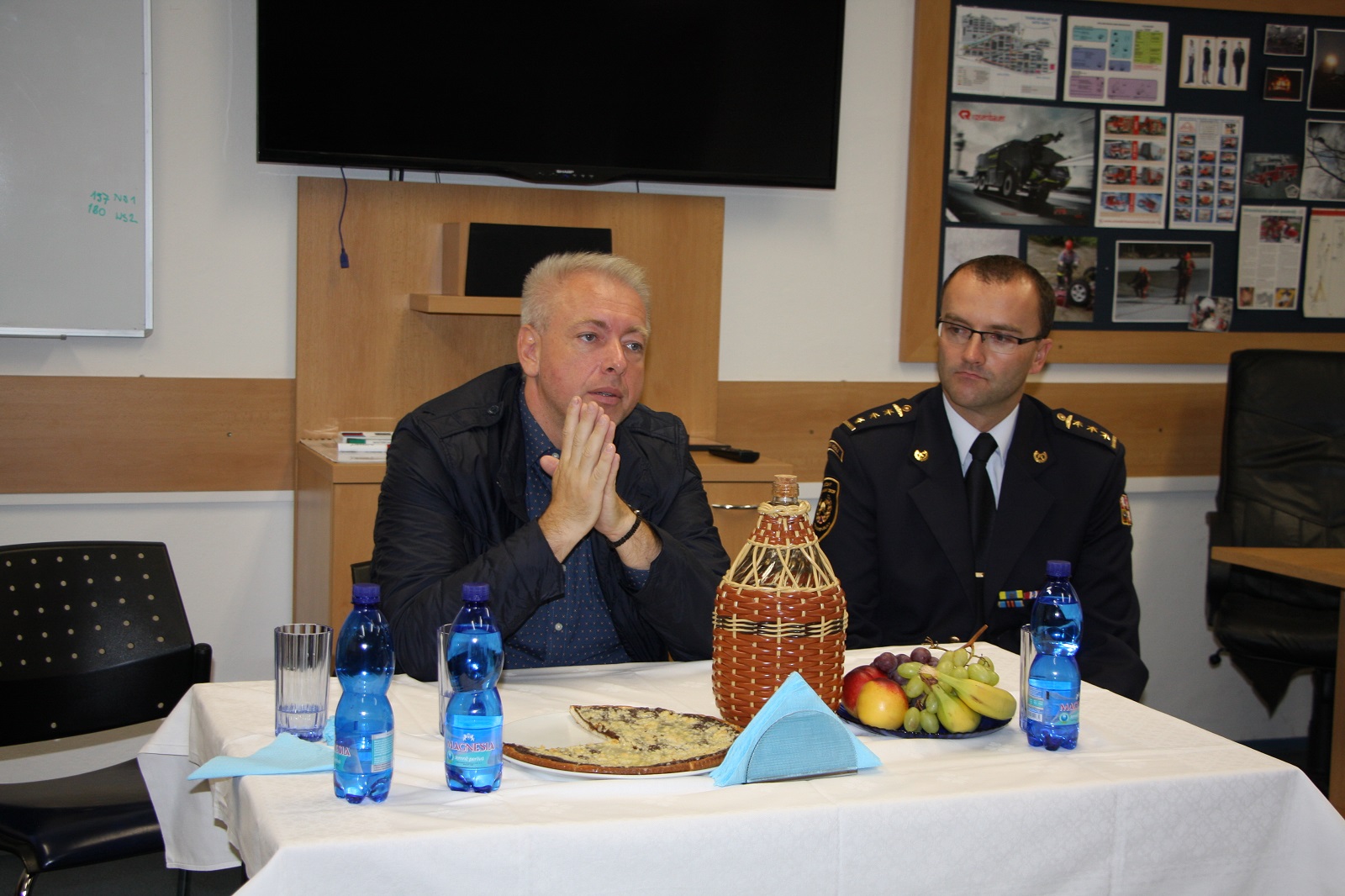 V úvodu debaty předal velitel stanice ministru vnitra drobný dar, který je typický pro náš kraj. Následně byly řešeny problematiky vystrojování, veřejných zakázek a dalších oblastí, které se hasičů dotýkají a daly by se zlepšit.