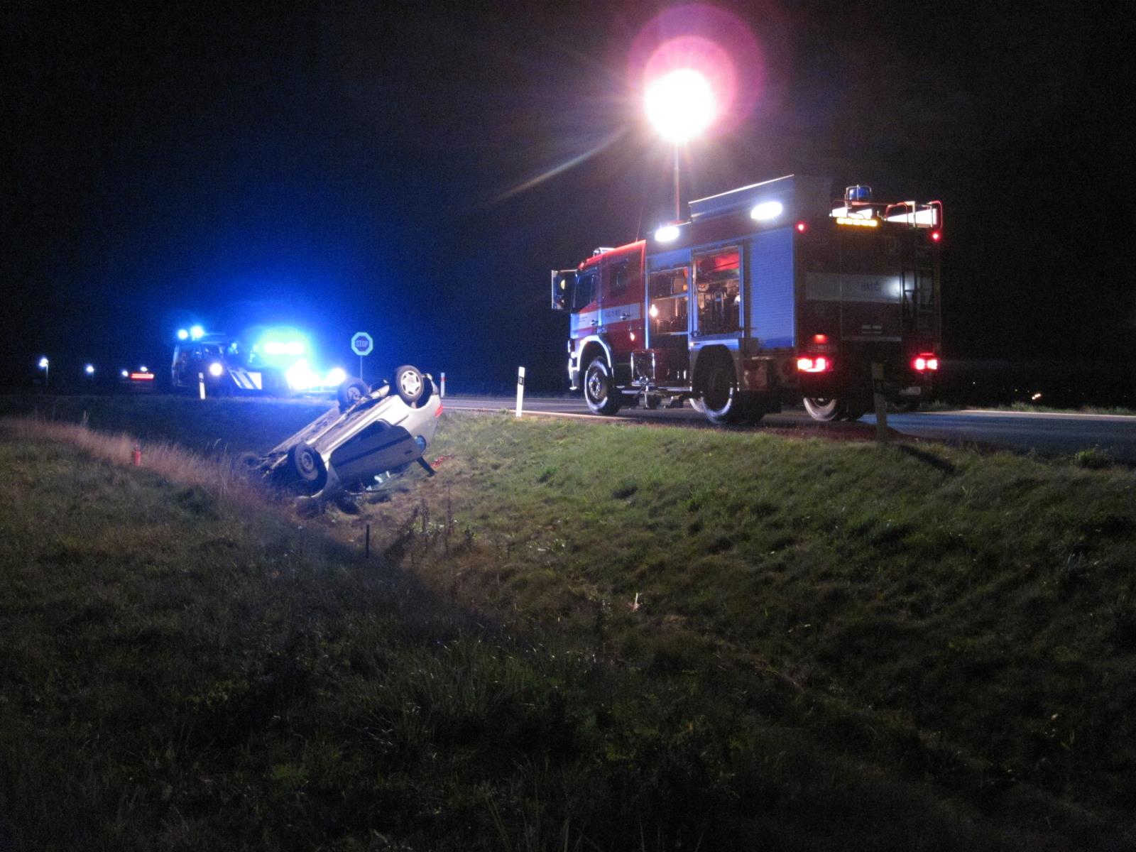 Po příjezdu k nehodě velitel zásahu potvrdil nehodu jednoho osobního vozidla, jehož řidička při jízdě sjela mimo komunikaci, kde se s autem převrátila na střechu. Po nehodě mladá žena zůstala zaklíněna uvnitř vozu. Hasiči po svém příjezdu ihned zraněnou ženu vyprostili ven a předali do péče záchranářům. Ti zraněnou řidičku odvezli do krajské nemocnice k dalšímu vyšetření.