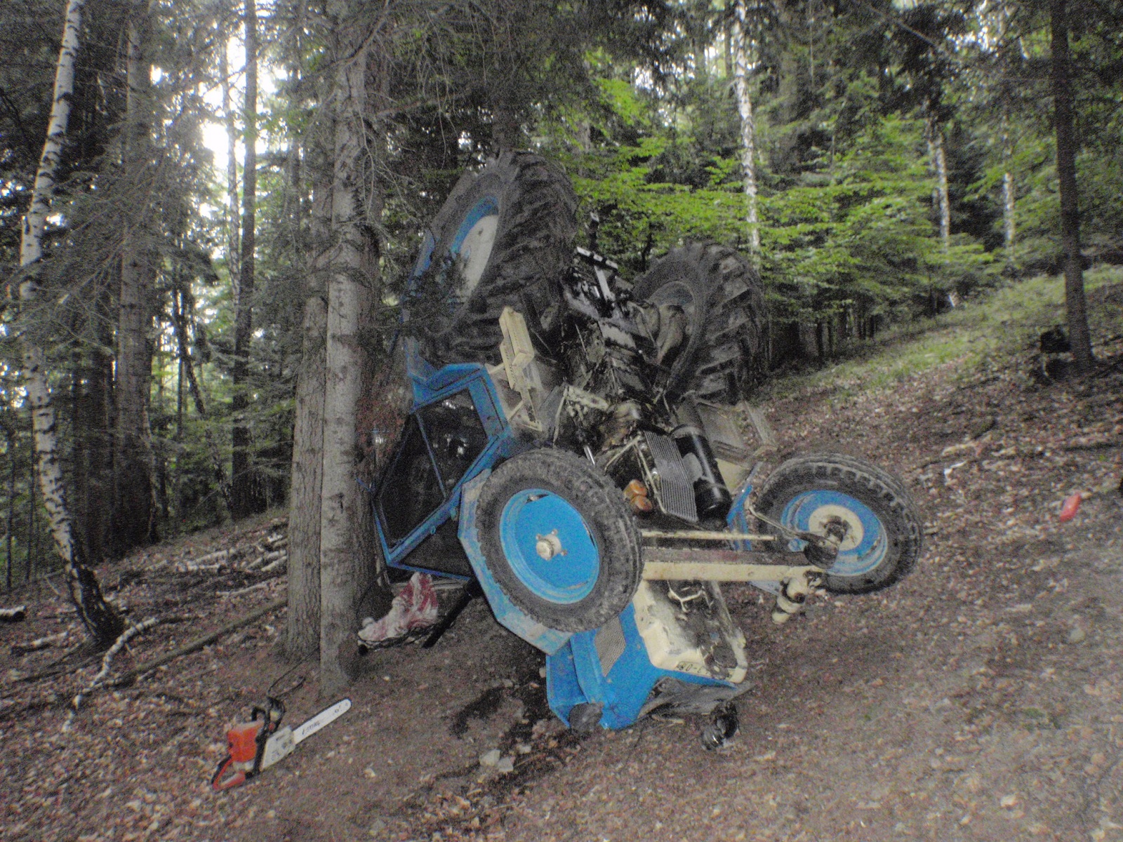 Po příchodu k traktoru se dozvěděli, že zde strýc se synovcem sváželi dřevo. Při jízdě ve svažitém terénu se ale traktor převrátil. Mladý muž se snažil z traktoru vyskočit, ten ho ale zachytil. Jeho strýc ihned zalarmoval mobilním telefonem složky integrovaného záchranného systému.