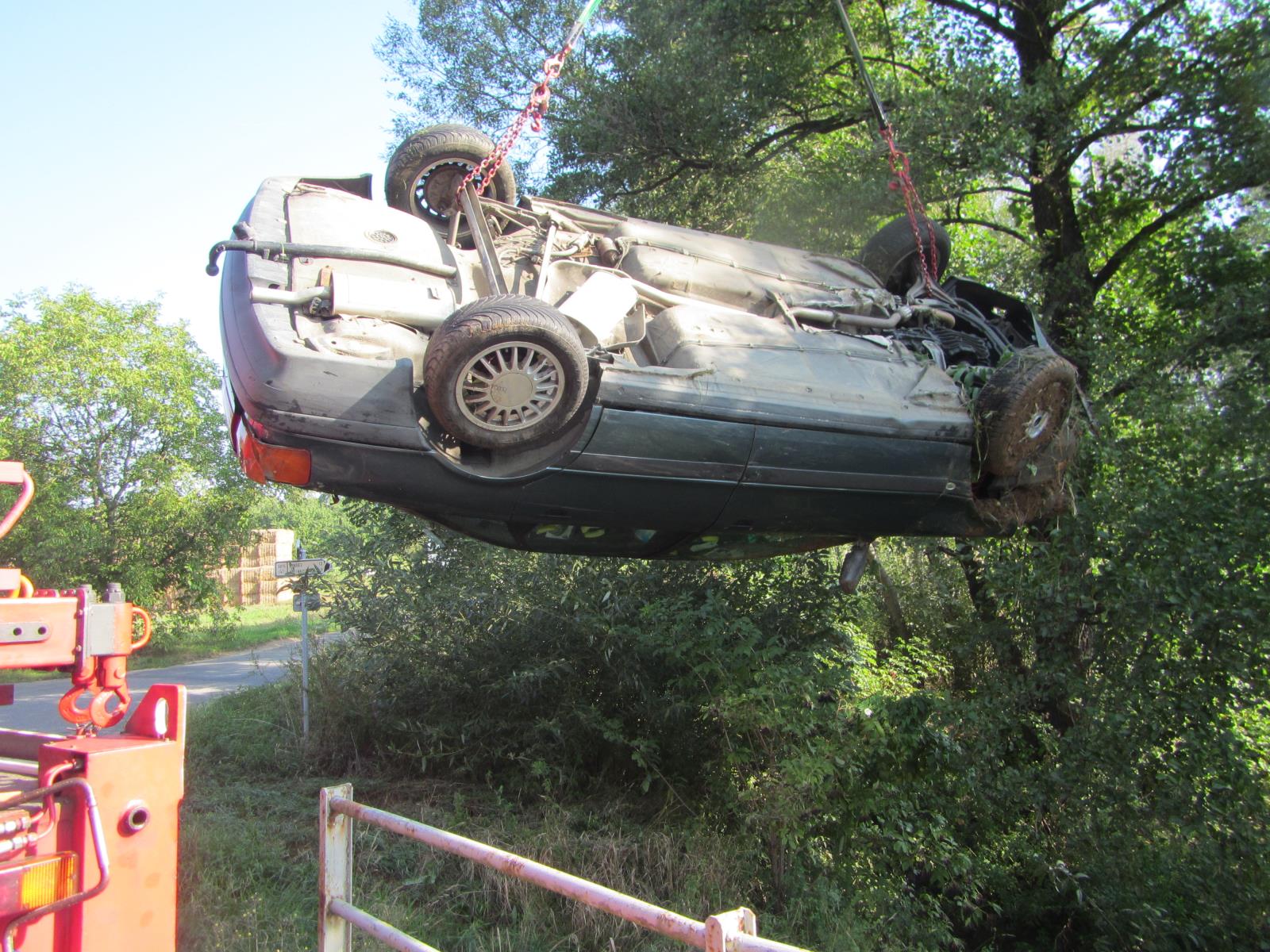 Dále se na místo události dostavili dopravní policisté. Ti šetří okolnosti a příčinu nehody. Po jejich zadokumentování místa nehody hasiči s využitím vyprošťovacího automobilu vytáhli vozidlo zpět na komunikaci. Jeho další odtah si zajistí již sám majitel.