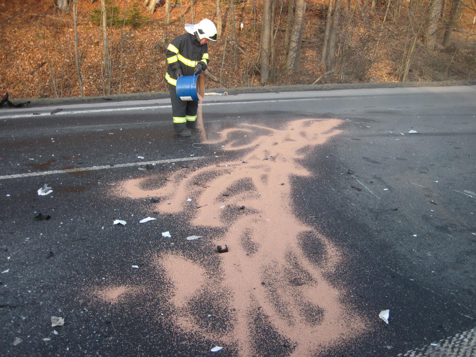 Hasiči u vozidel provedli protipožární opatření, nainstalovali zástěny a zasypali sorbentem uniklé provozní kapaliny. Jakmile to situace na místě nehody dovolila uklidili hasiči komunikaci od střepů a úlomků z vraků vozidel a zametli použitý sorbent.