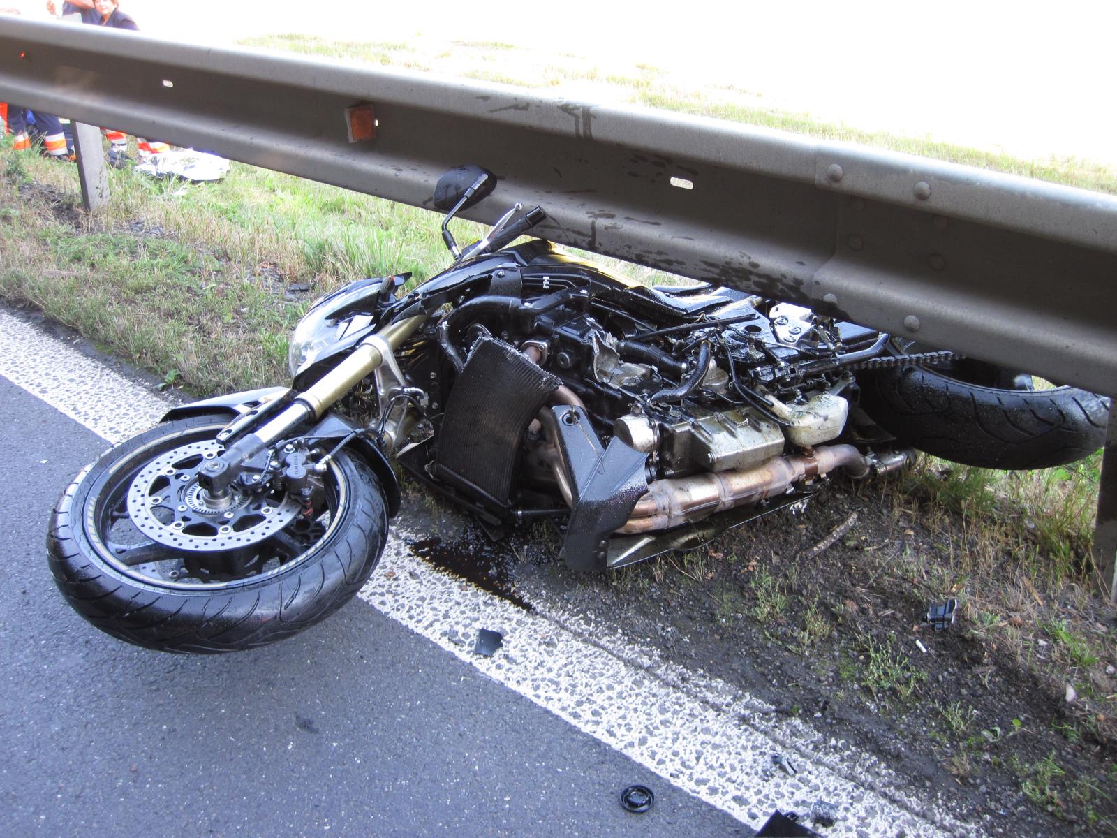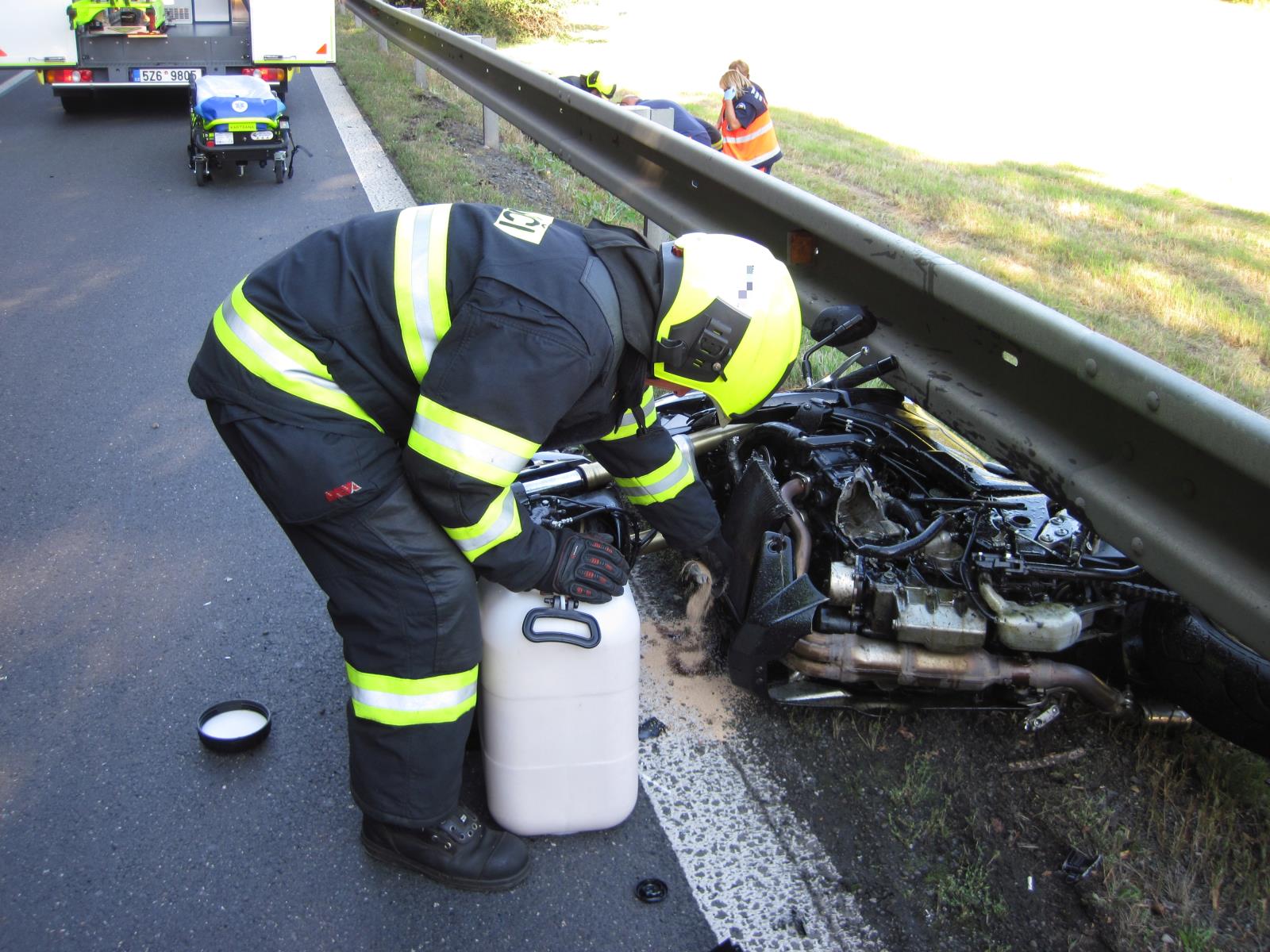 Záchranáři jej převezli do nemocnice k dalšímu vyšetření. U dopravních prostředků provedli protipožární opatření a u motorky zasypali uniklé provozní kapaliny sorbentem.