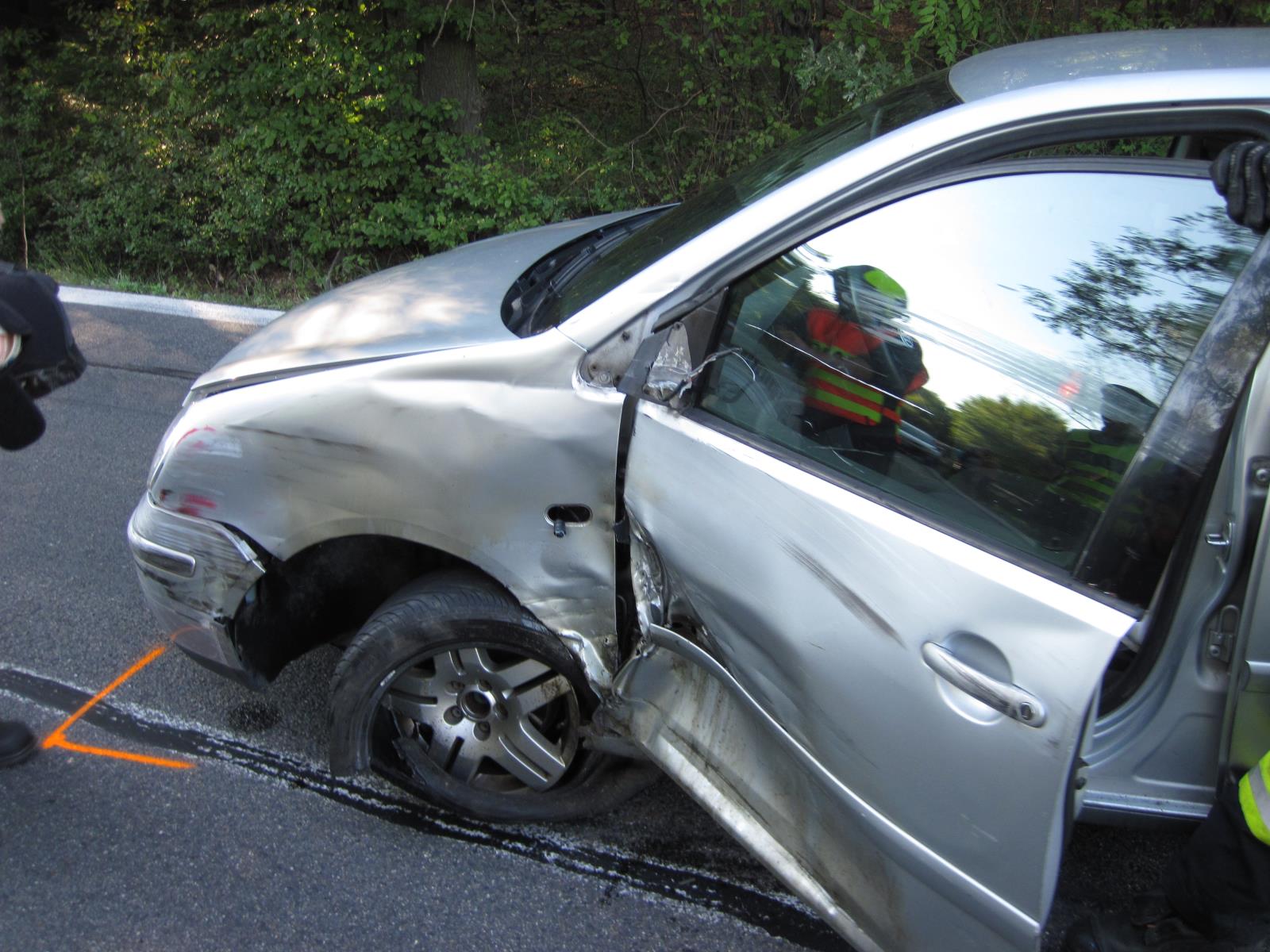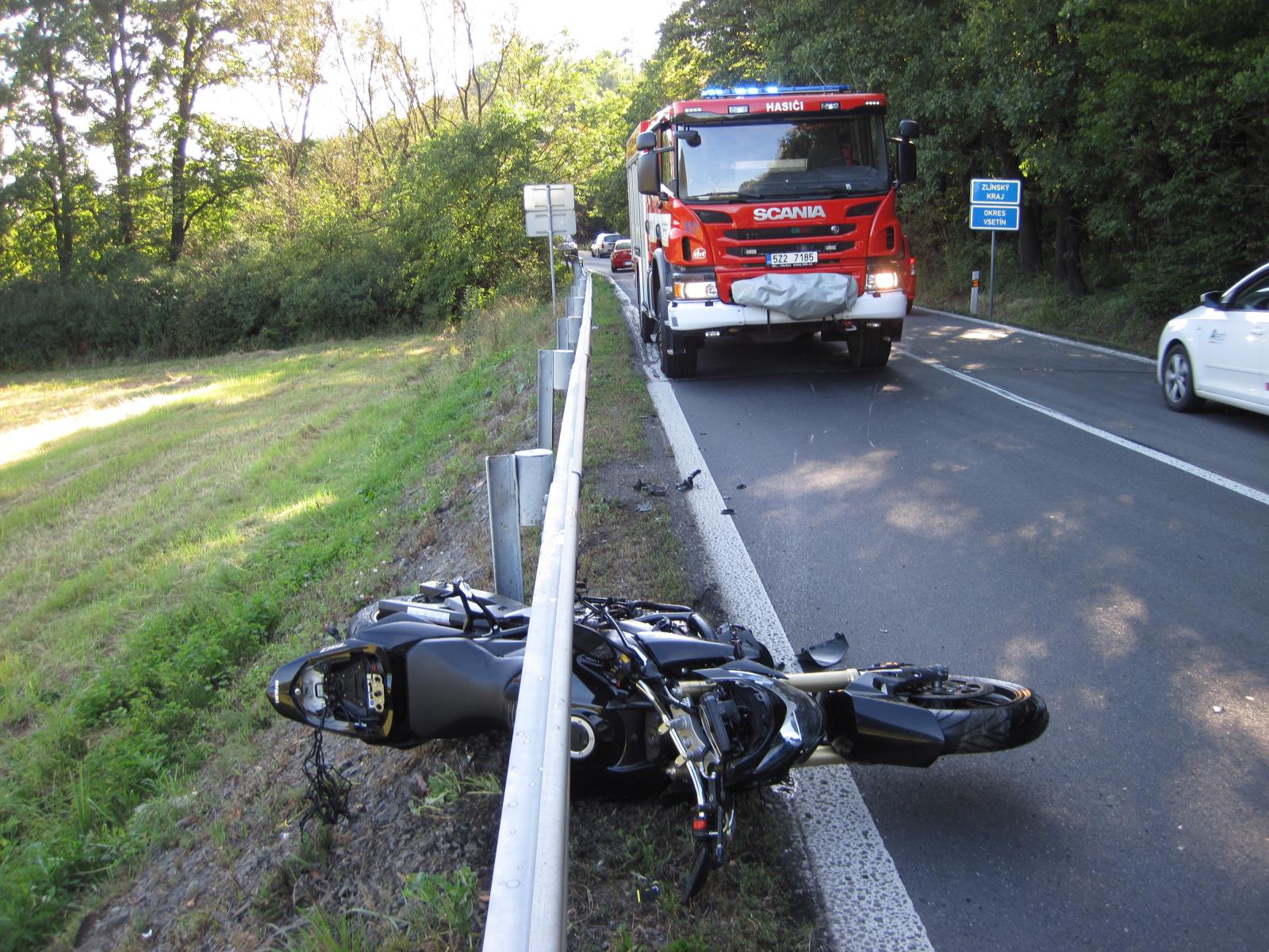 Po příjezdu na místo průzkumem hasiči zjistili, že se na rozhraní Zlínského kraje a Moravskoslezského kraje střetl řidič osobního vozidla s motorkářem, který vjel v zatáčce do protisměru. Po srážce motorkář narazil do svodidel, poté letěl vzduchem několik metrů a dopadl až na pole.