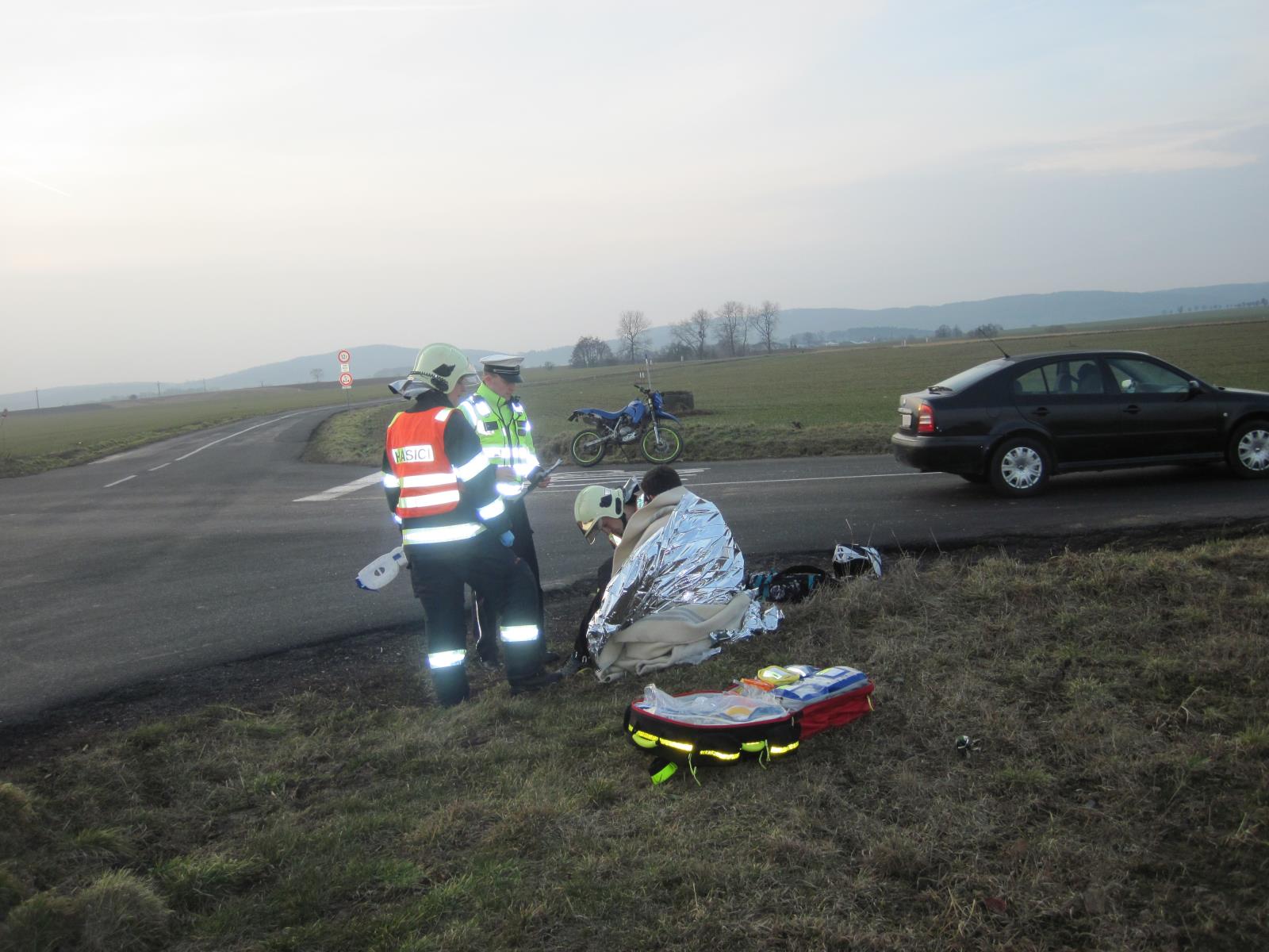 Motorkář na Kroměřížsku skončil po nehodě v nemocnici