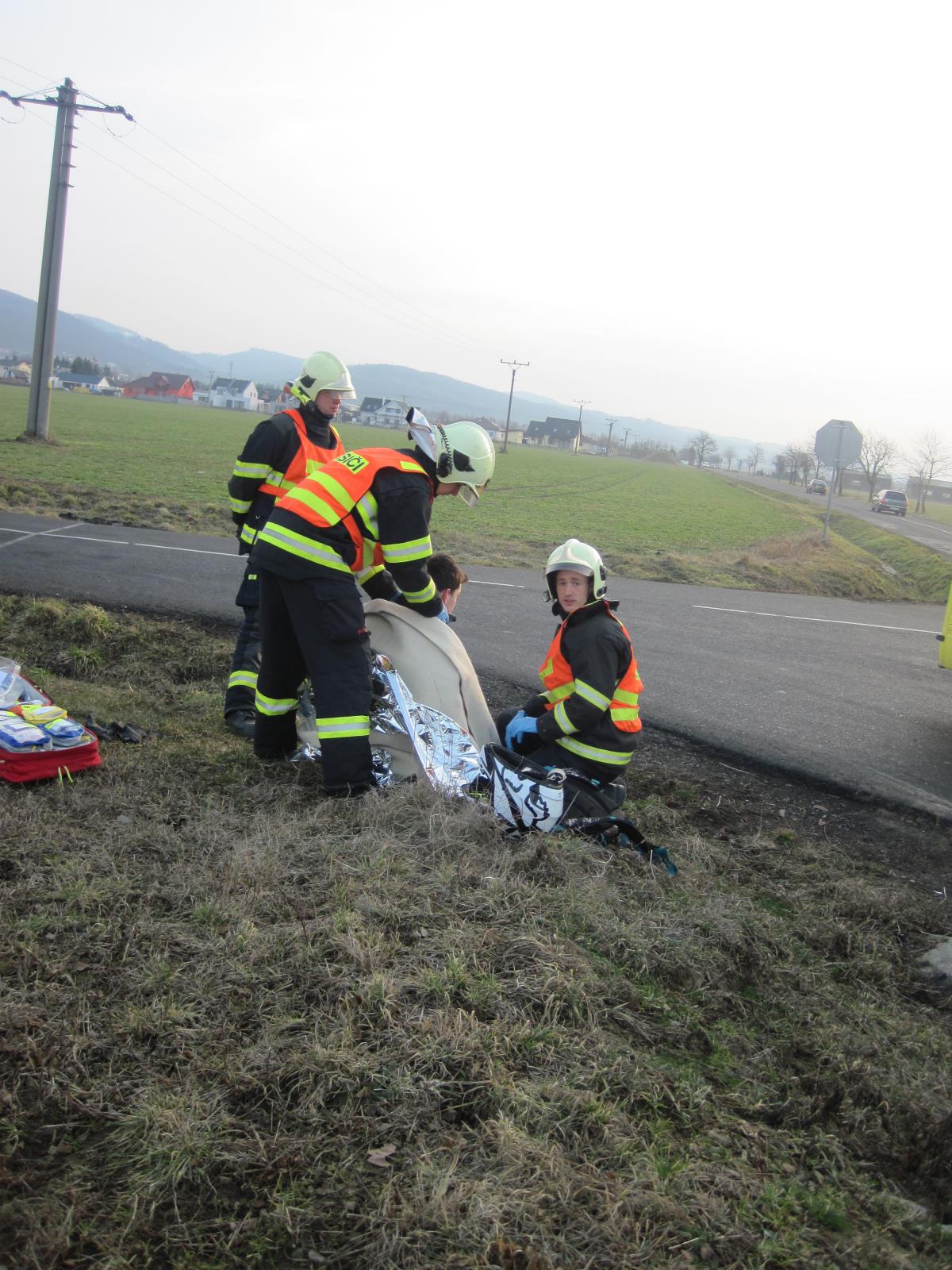 Profesionální hasiči ze stanice Holešov vyjeli dnes, 21.9. 2019,  o půl osmé ráno na křižovatku u obce Martinice na Kroměřížsku, kde došlo ke střetu mezi osobním vozidlem a motorkářem.