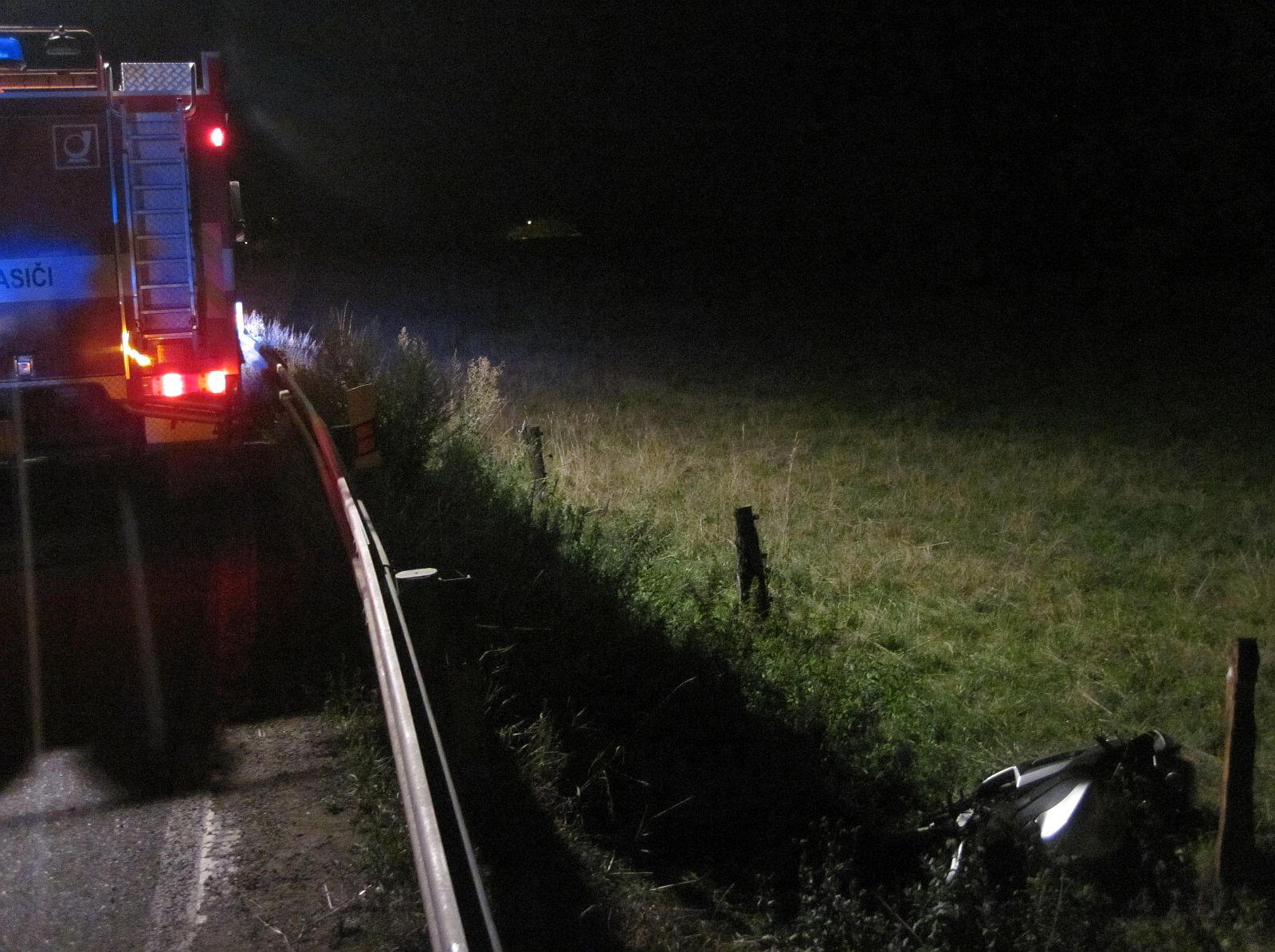 Událost byla na krajské operační středisko zlínských hasičů oznámena 17.srpna 2017 ve 20:57 hodin. Do devíti minut už byli na místě profesionální hasiči ze stanice Vsetín. Ti zajistili místo nehody, havarovaný motocykl proti vzniku požáru a úniku provozních kapalin a asistovali záchranářům při ošetření zraněného motorkáře. Místo události také nasvětlili pomocí osvětlovacího teleskopického stožáru zásahového vozidla. Ještě před předáním místa události policistům hasiči vytáhli havarovaný motocykl zpět na komunikaci.