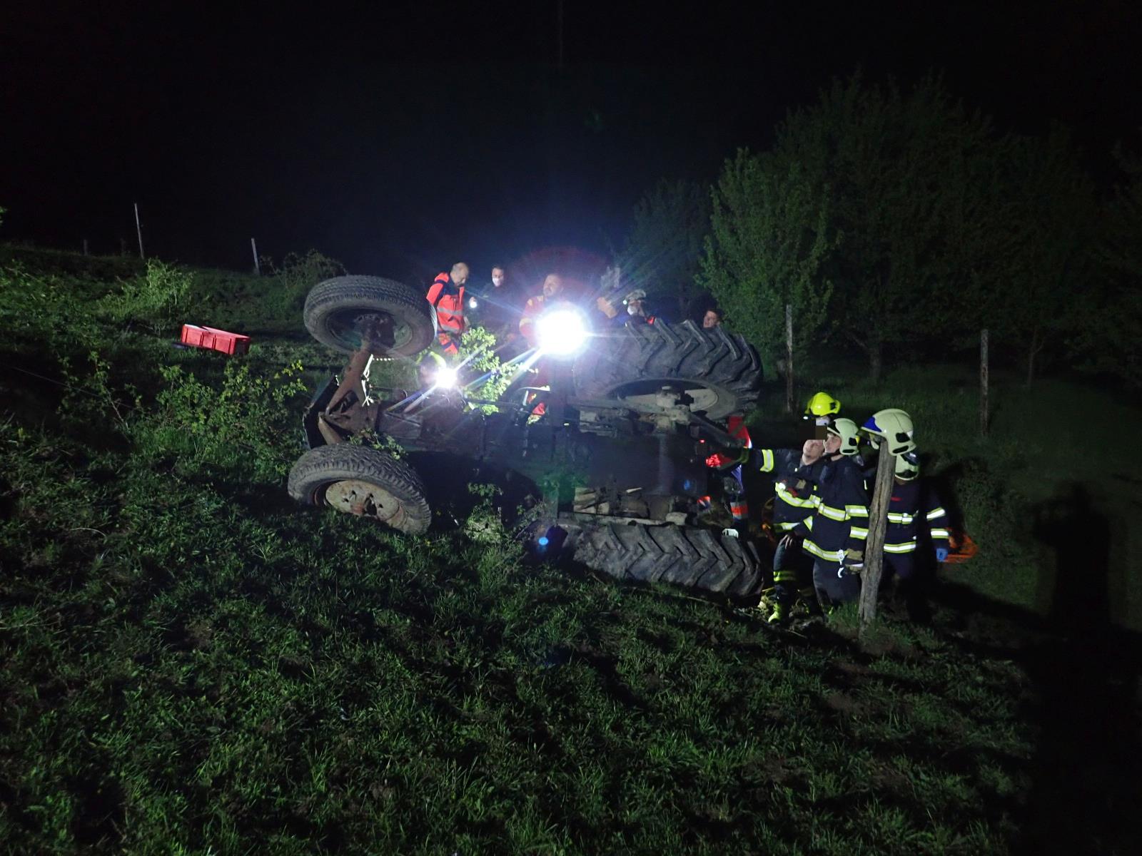 (16.05.2021) Vyproštění zraněného a následně traktoru trvalo několik hodin. Dlouho do noci ze soboty na neděli zasahovali...
