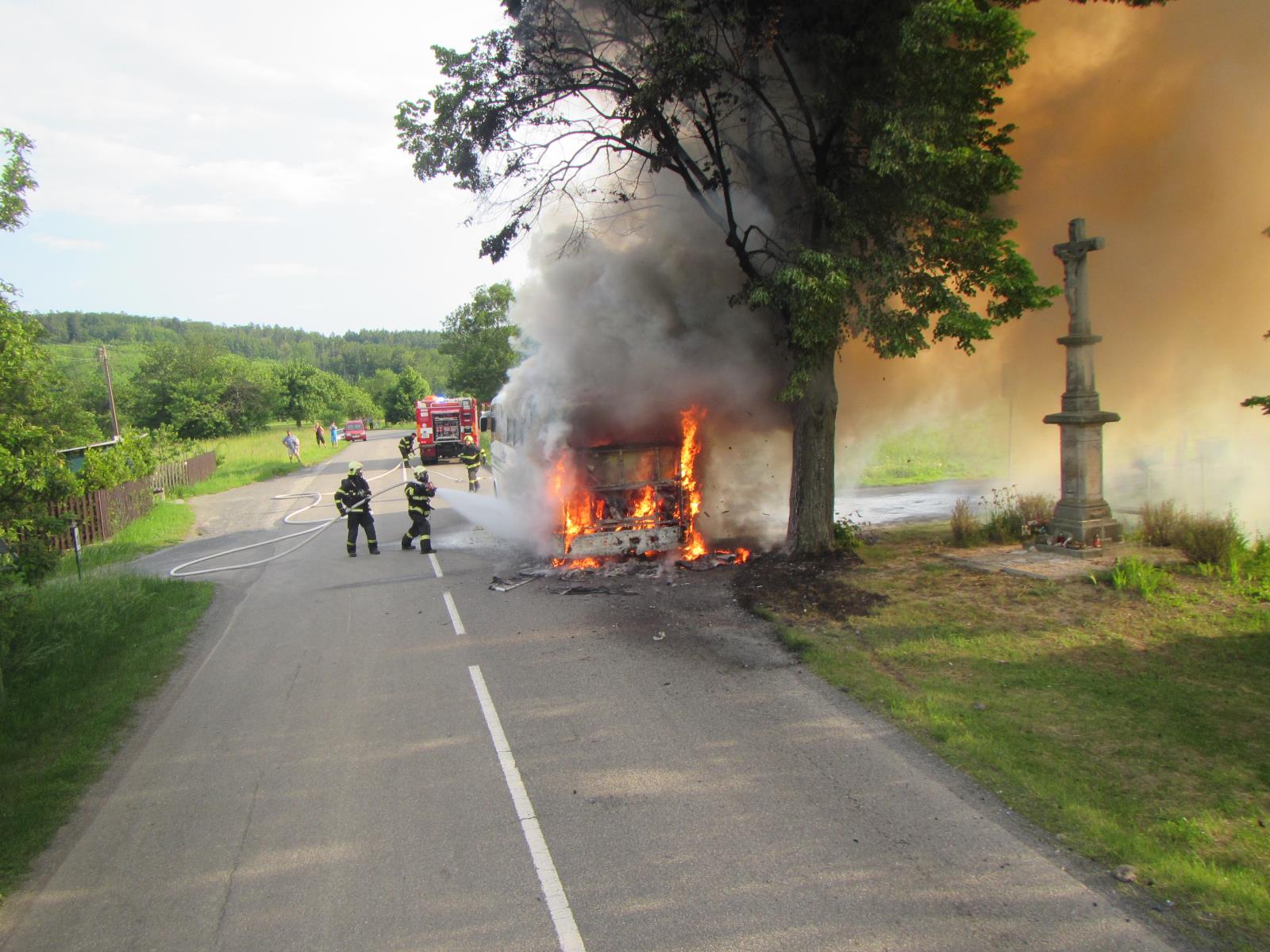 Hasiči v dýchací technice k likvidaci požáru použili celkem tři proudy hasební vody. Požárem byl zasažen i vzrostlý strom, nacházející se v těsné blízkosti hořícího autobusu.
