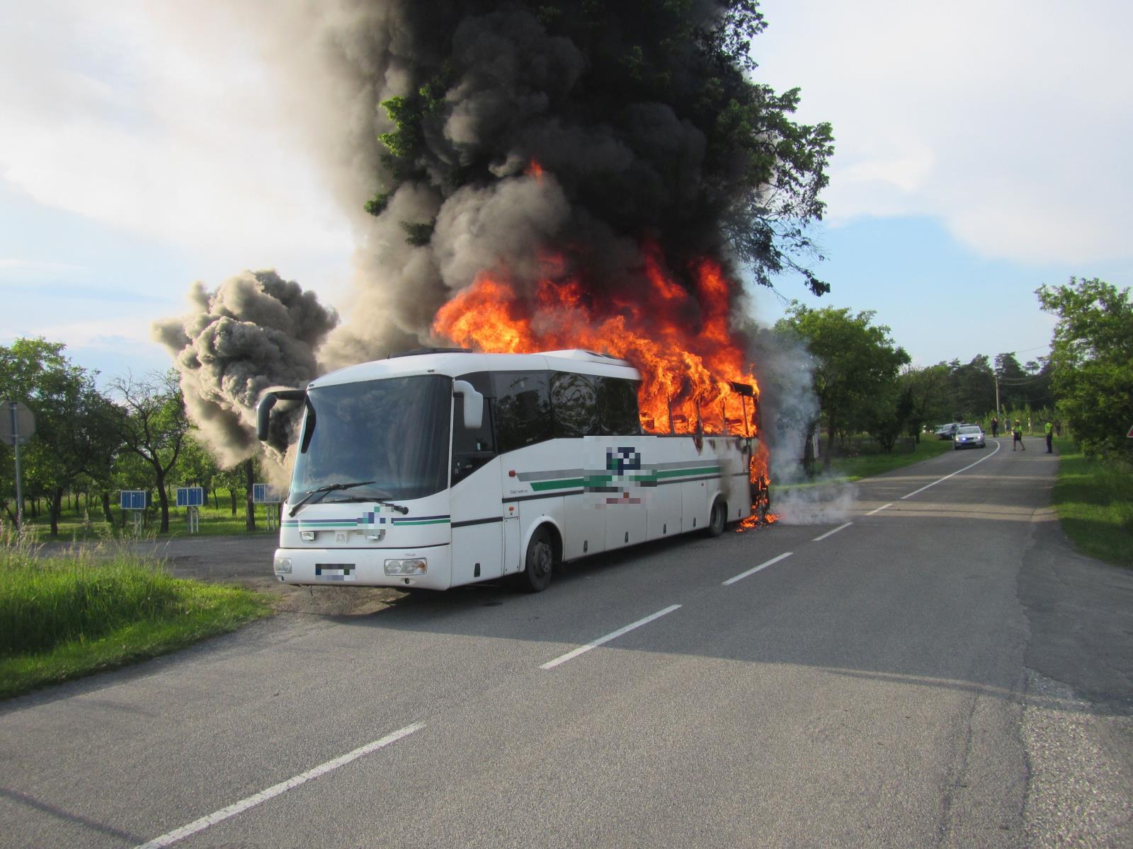 (4.6.2019) Zlínští hasiči dnes krátce po půl sedmé večerní zasahovali ve Zlíně v místní části Kudlov na výjezdu směrem na Březůvky u požáru autobusu, ve kterém cestovalo celkem 15 lidí a řidič.