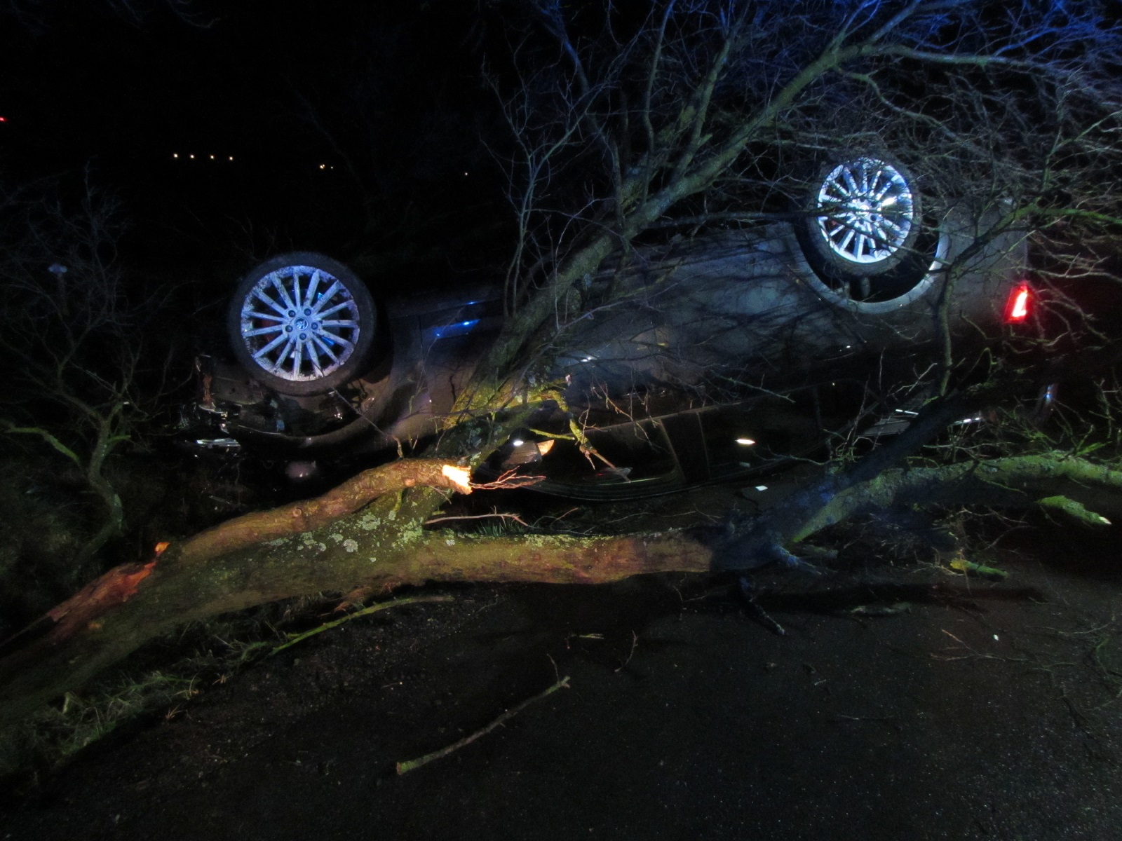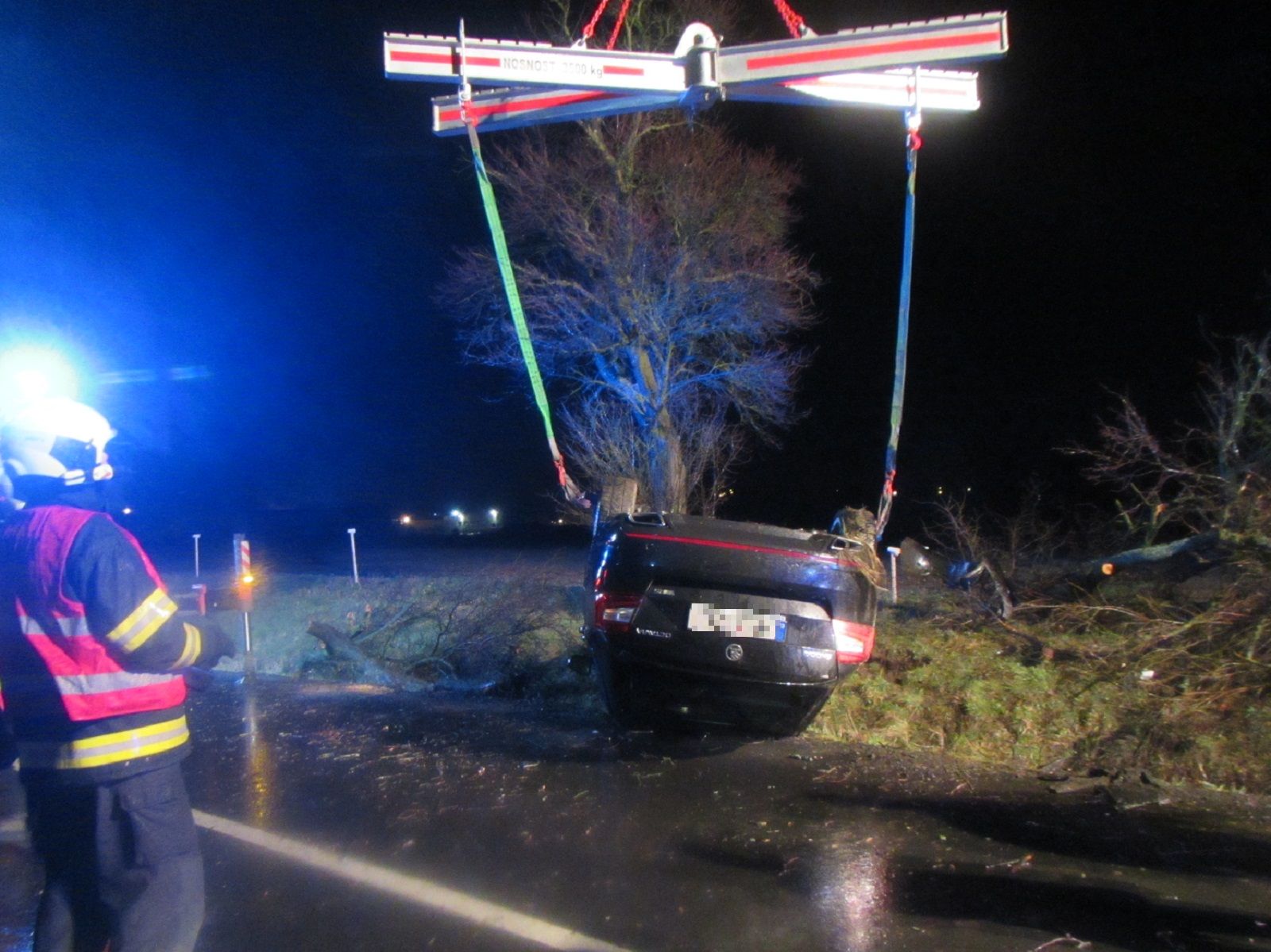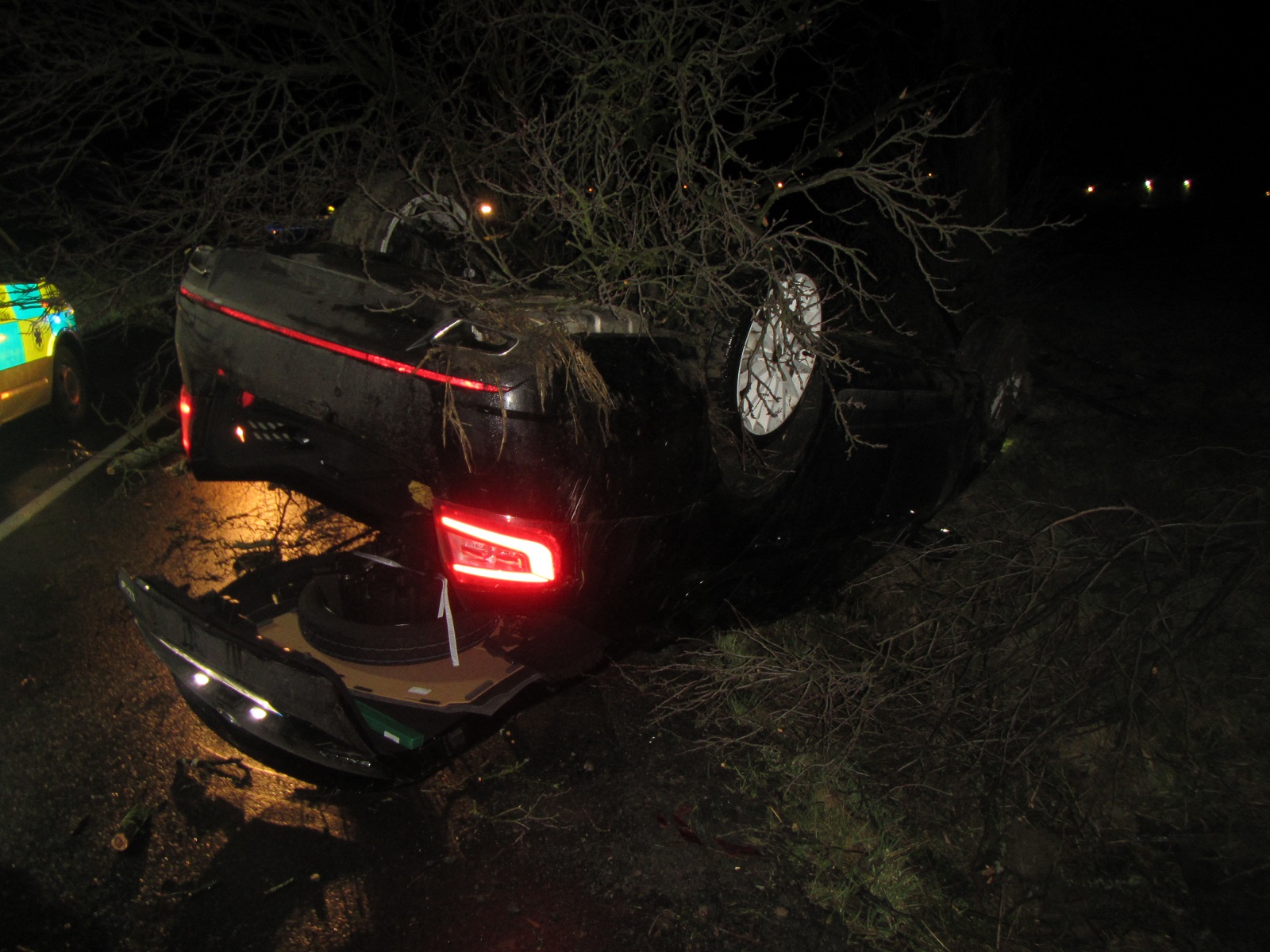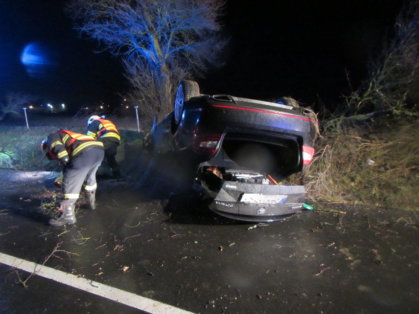 Na Zlínsku osobní automobil přerazil strom a převrátil se na střechu.