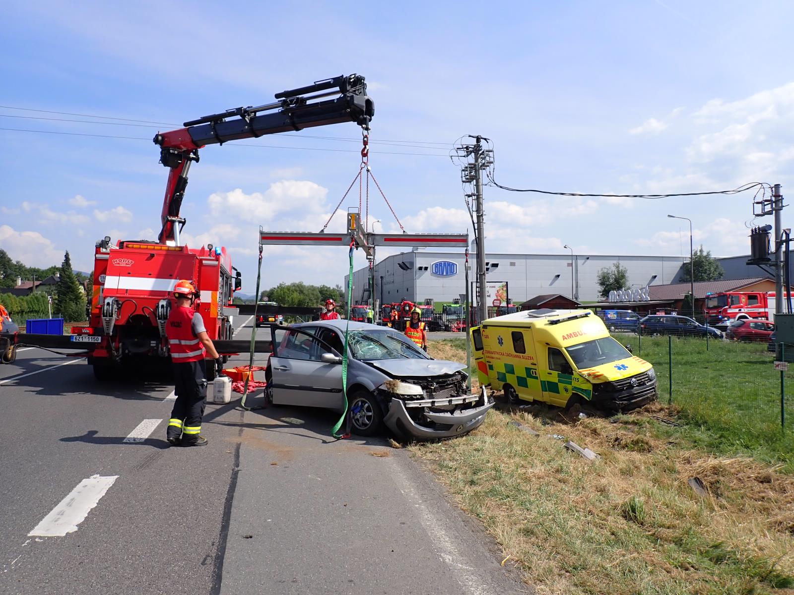 Od desáté hodiny dopolední zasahovali profesionální hasiči ze stanice Valašské Meziříčí a města Rožnov pod Radhoštěm u dopravní nehody osobního vozidla a sanitky, která převážela pacientku.