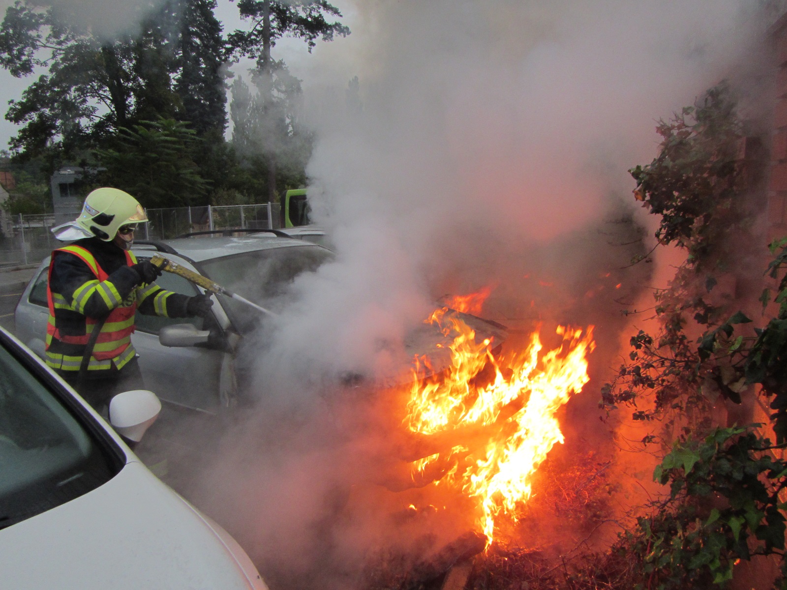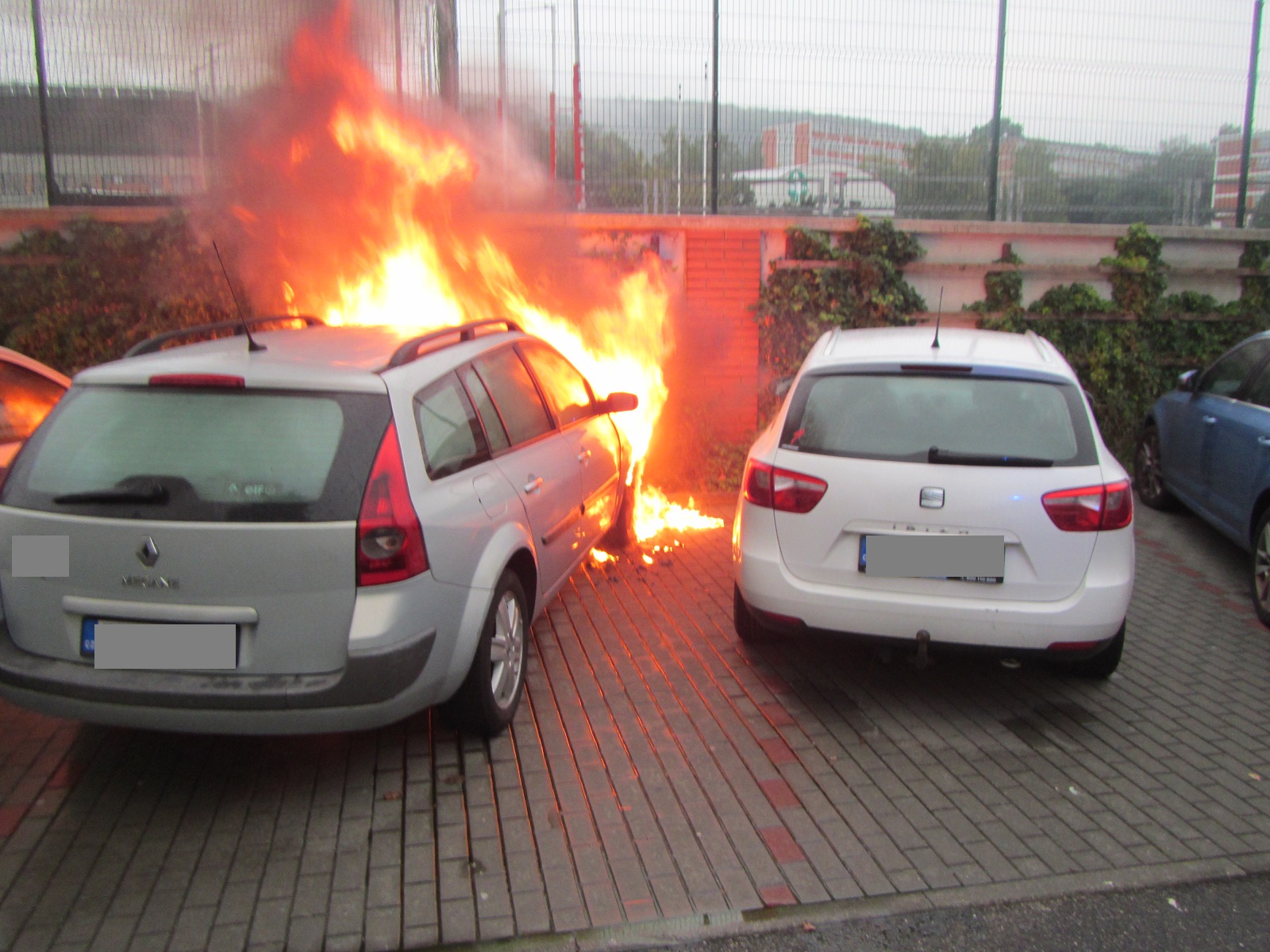 Po příjezdu na místo požáru hasiči uviděli hořící automobil Renault. Plameny začaly ohrožovat sousedící zaparkované vozidlo Ford a Seat. Hasiči požár uhasili jedním vysokotlakým proudem vody. Po uhašení plamenů termokamerou hledali skrytá ohniska hoření.