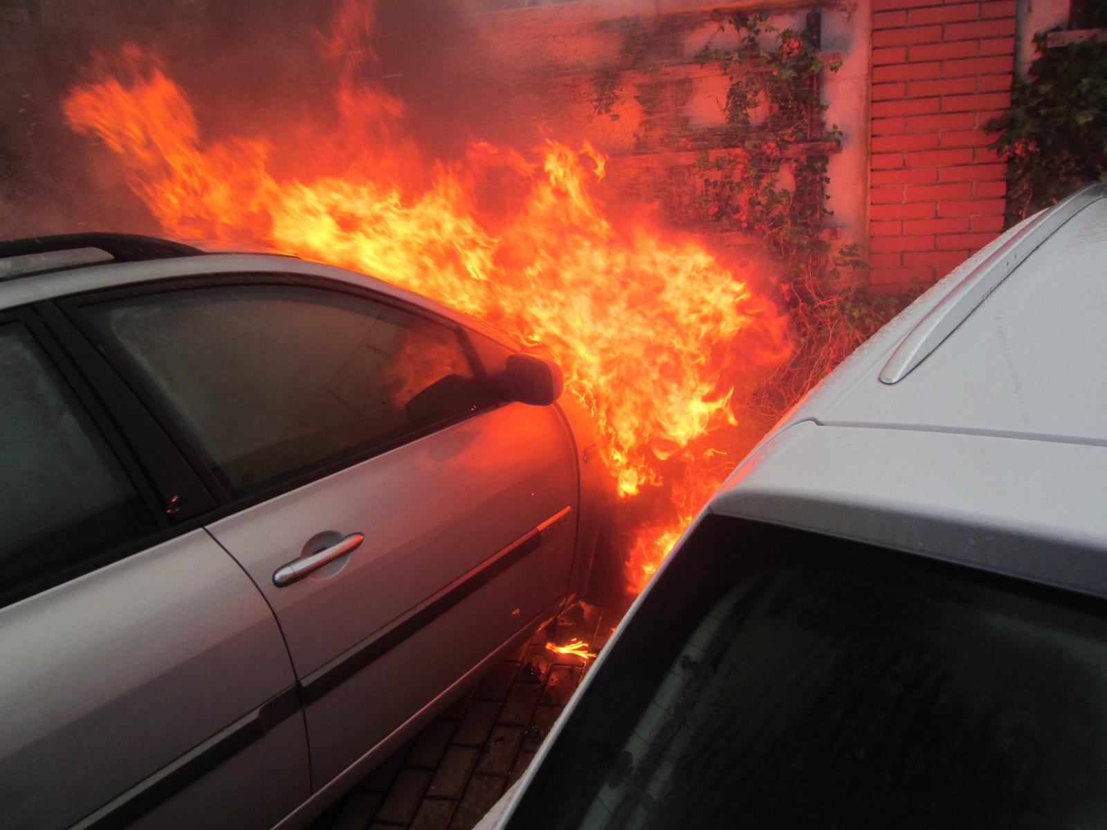 Požár způsobil škodu na plastových dílech na sousedních zaparkovaných vozech Ford i Seat. Lak vozidel plameny nepoškodily.